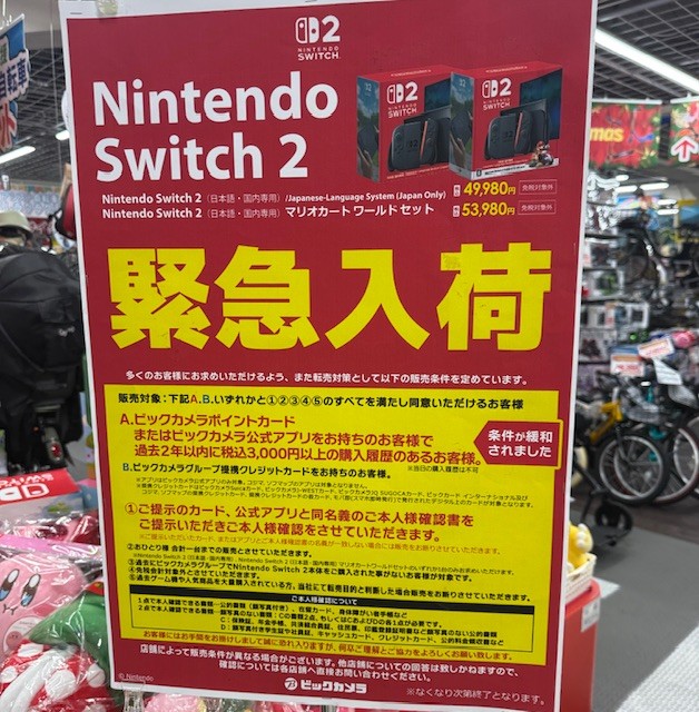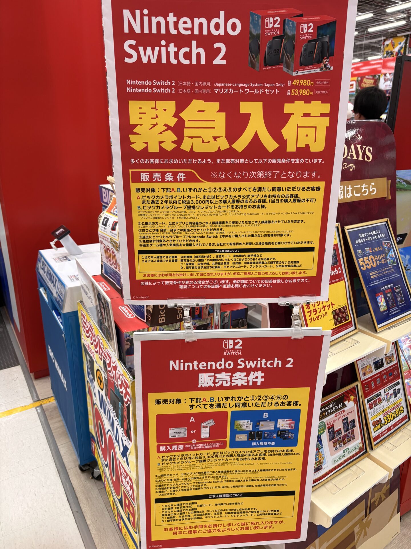全国のビックカメラとコジマ店頭で、ヨドバシカメラを超える5万台のSwitch2店頭販売(先着順)が実施されました!