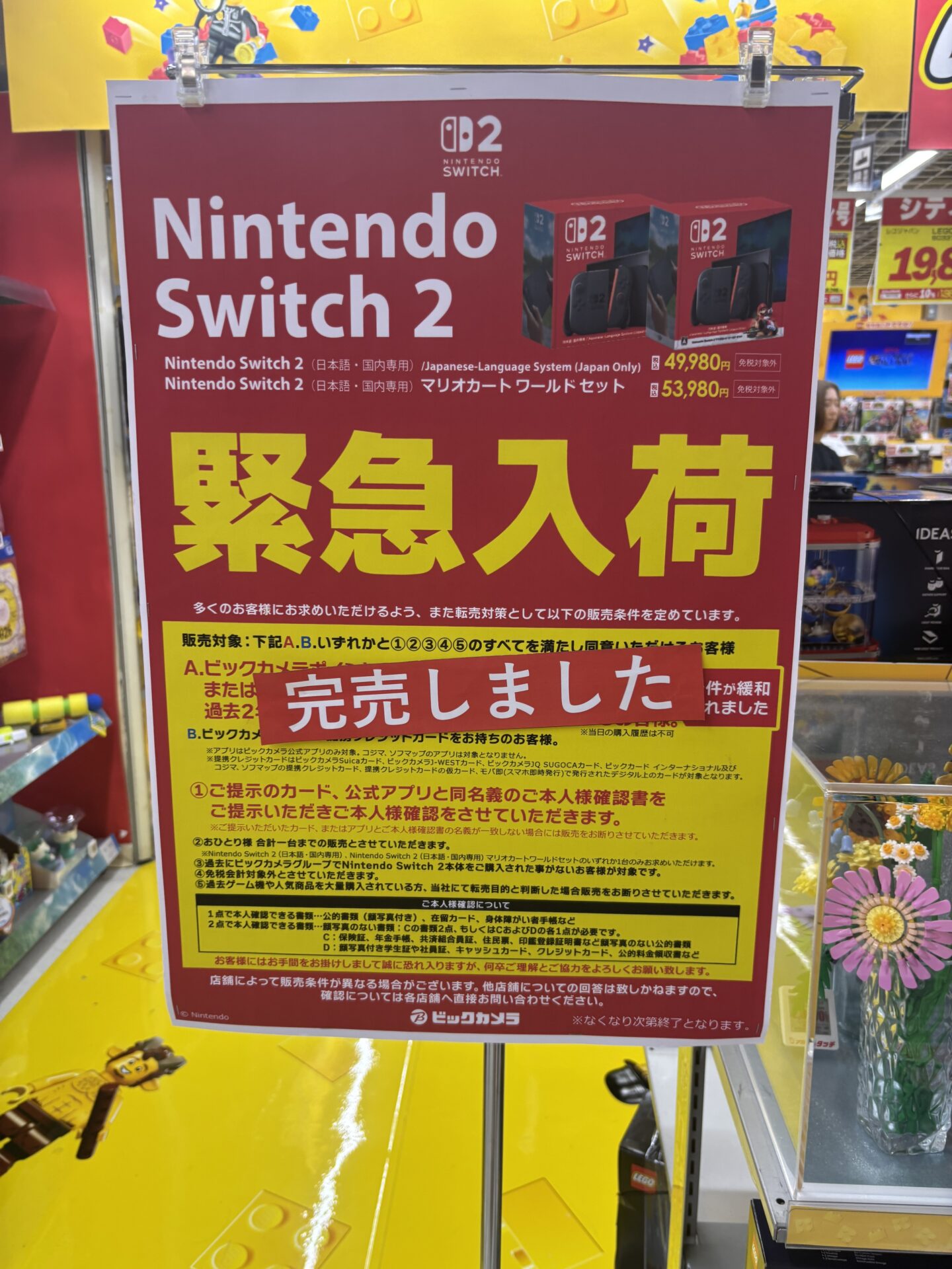 全国のビックカメラとコジマ店頭で、ヨドバシカメラを超える5万台のSwitch2店頭販売(先着順)が実施されました!