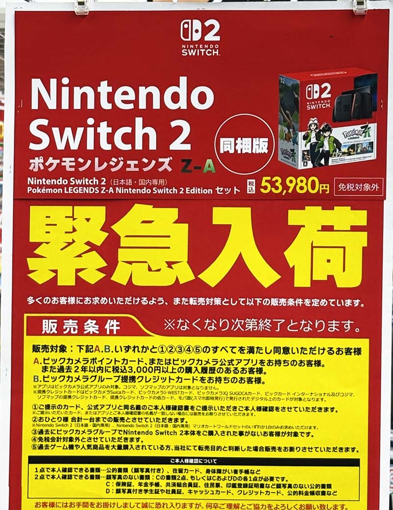 全国のビックカメラとコジマ店頭で、ヨドバシカメラを超える5万台のSwitch2店頭販売(先着順)が実施されました!