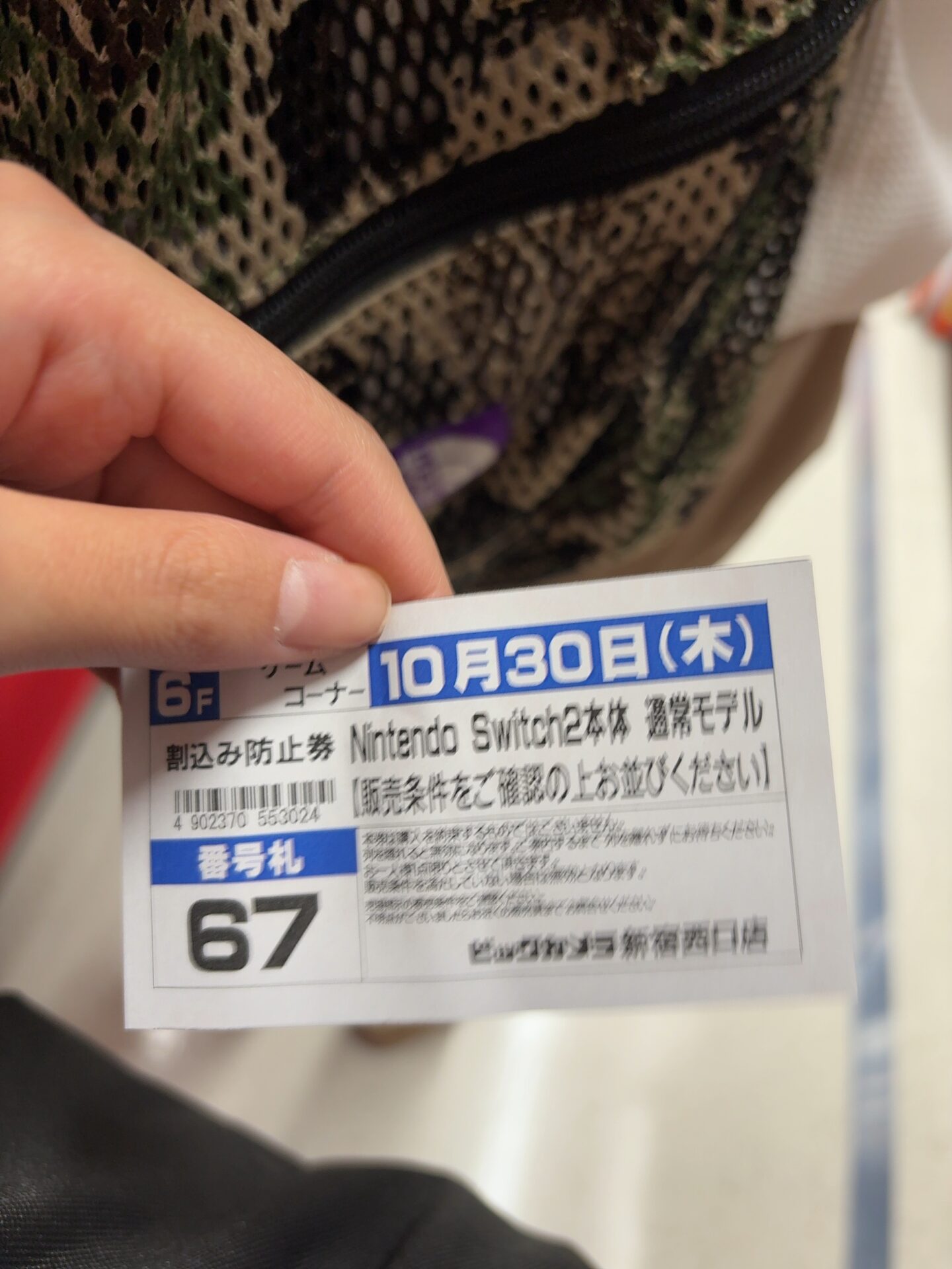 Switch2やっっと買えました!新宿小田急のビックカメラです!あと10人ほど並んでおり、少し配布券は余っている様子でした!!!こちらのサイトのおかげです!ありがとうございます!