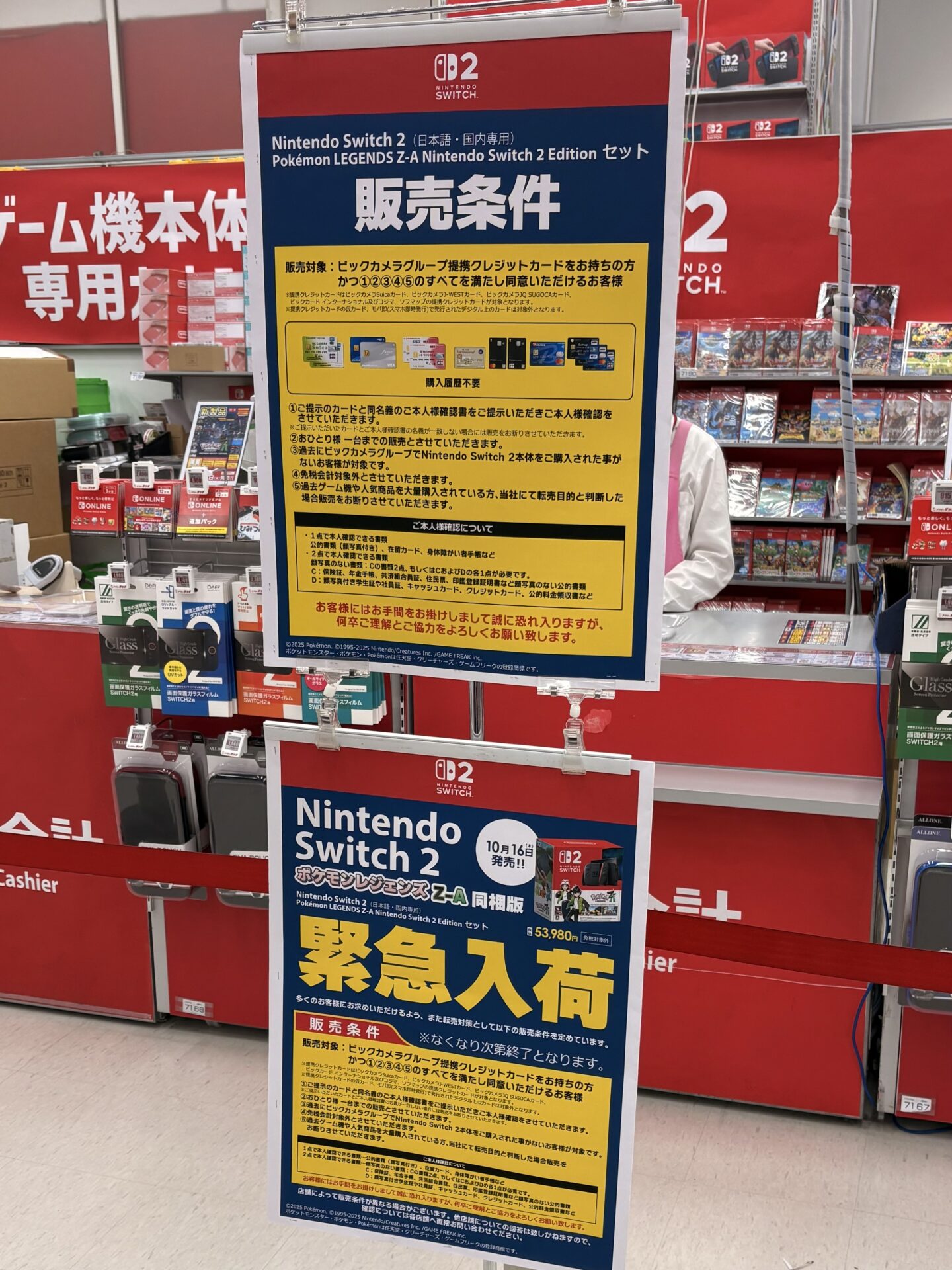ビックカメラ池袋西口店にてSwitch2購入出来ました。