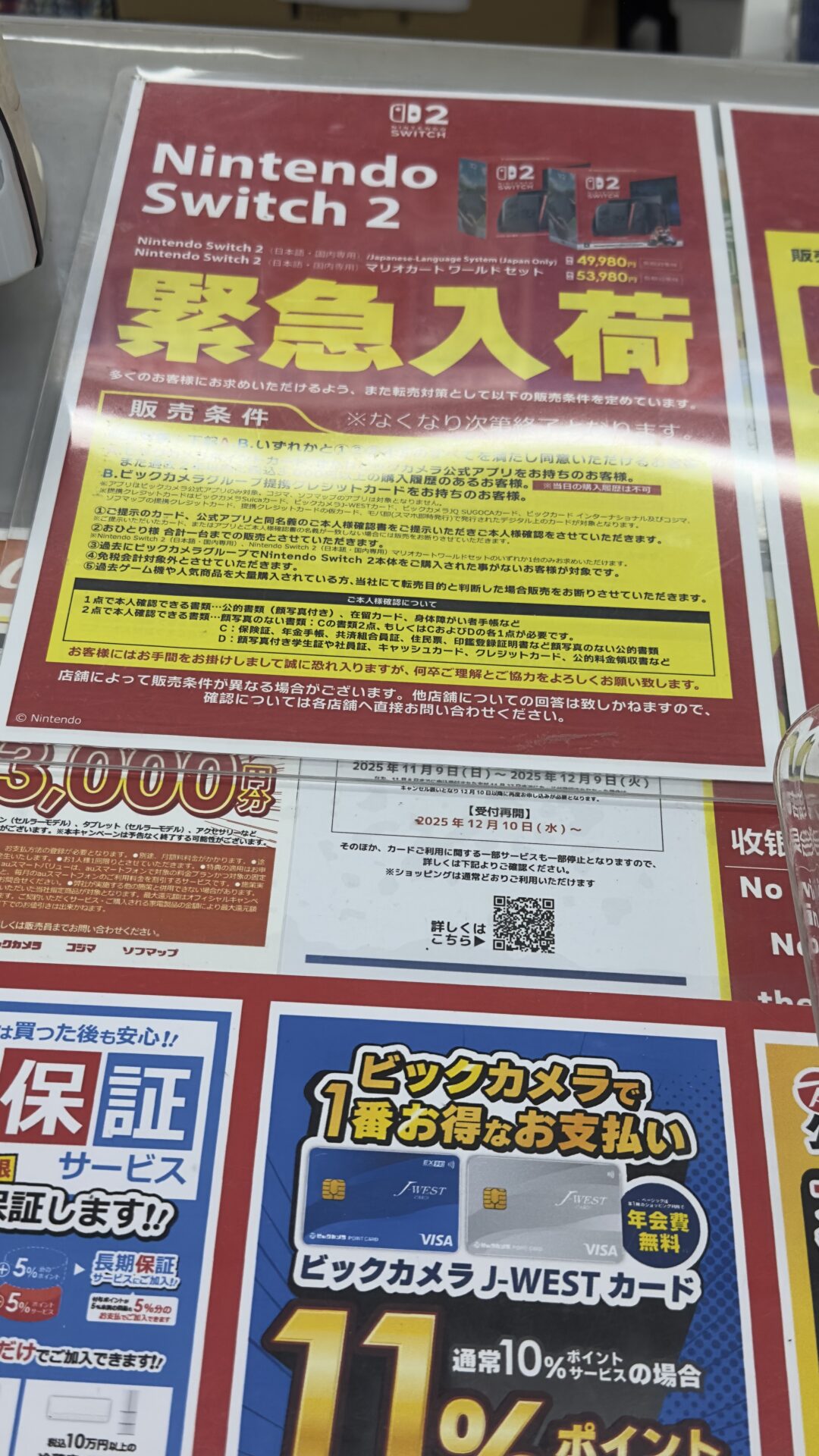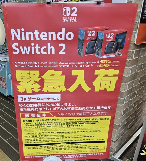 全国のビックカメラとコジマ店頭で、ヨドバシカメラを超える5万台のSwitch2店頭販売(先着順)が実施されました!