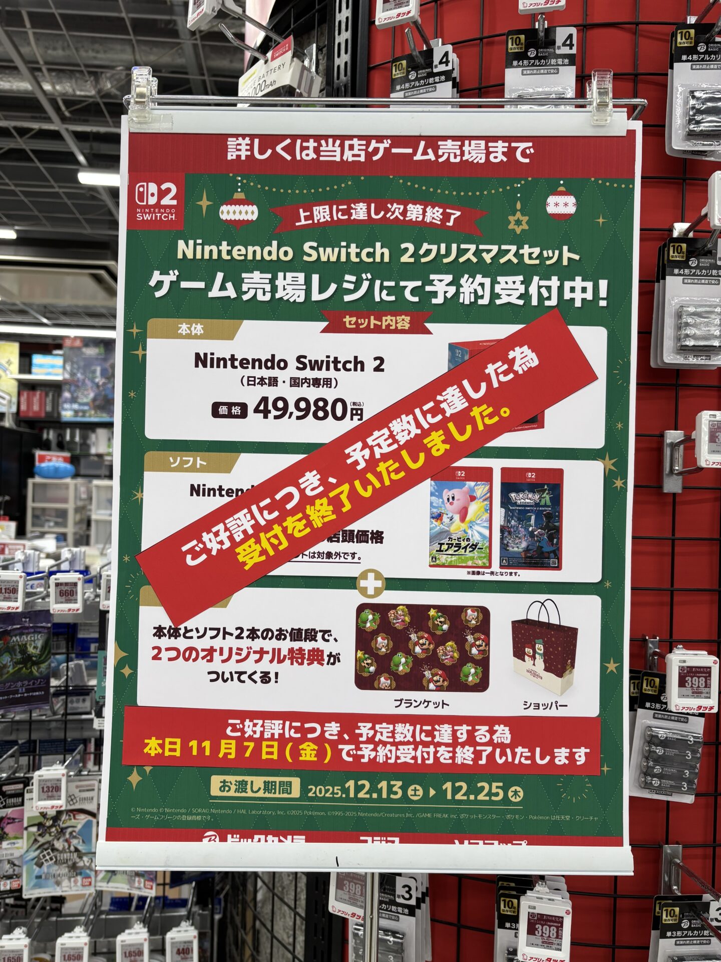 11月に入ってからビックカメラってほとんどSwitch2入荷されてないですけど、クリスマスセットの予約が上限に行くまでこんな感じなんですかね?