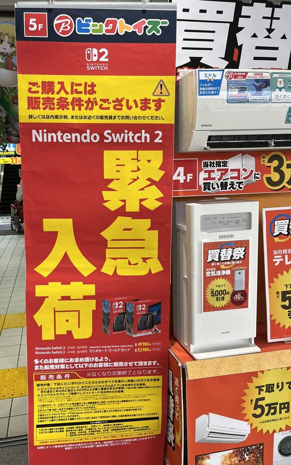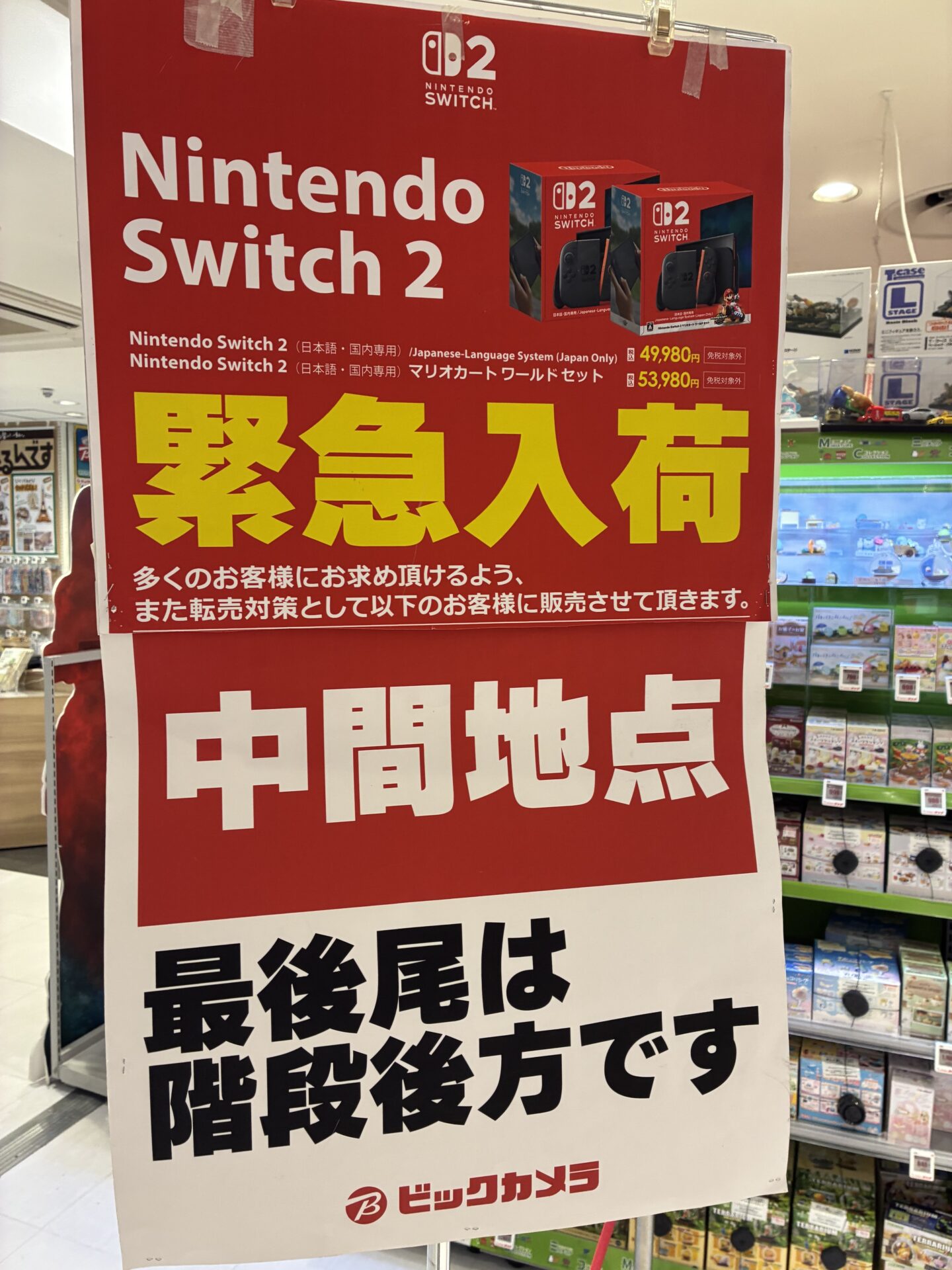 全国のビックカメラとコジマ店頭で、ヨドバシカメラを超える5万台のSwitch2店頭販売(先着順)が実施されました!
