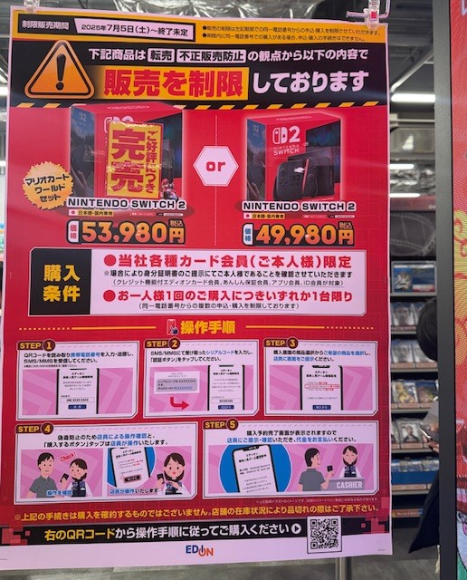 Switch2 エディオン店頭在庫、販売速報(抽選、予約情報も)!