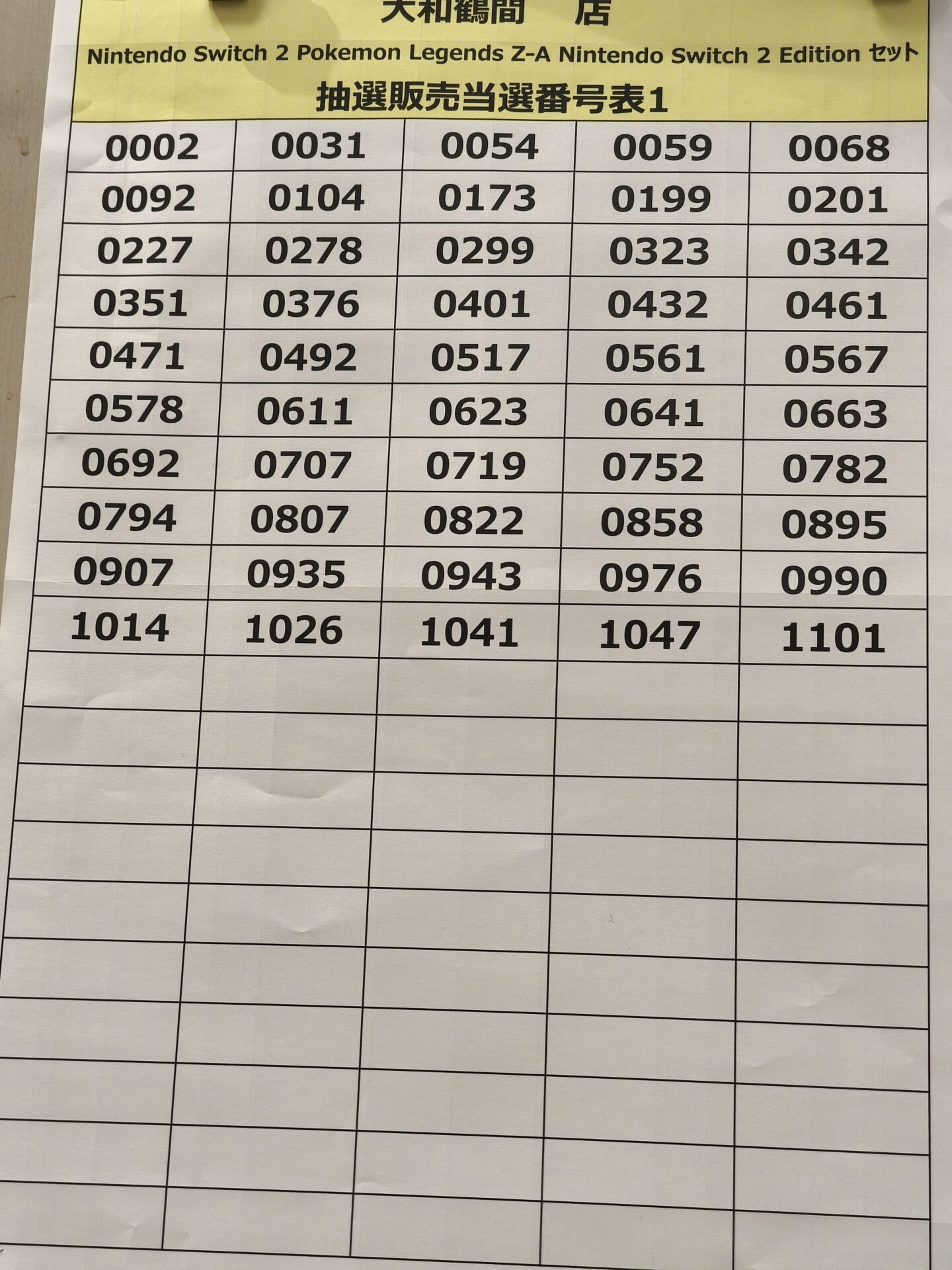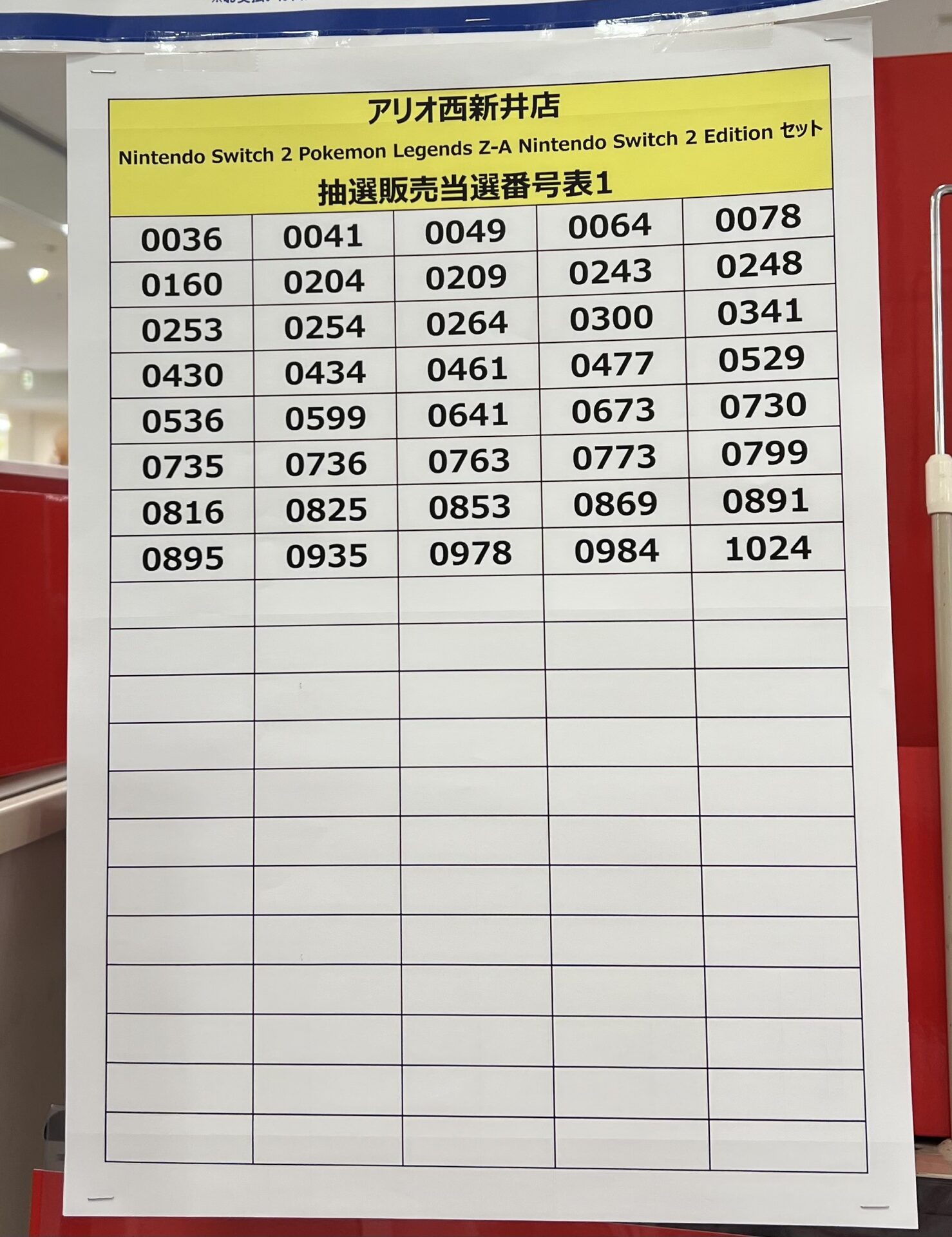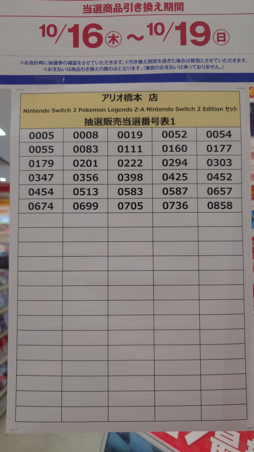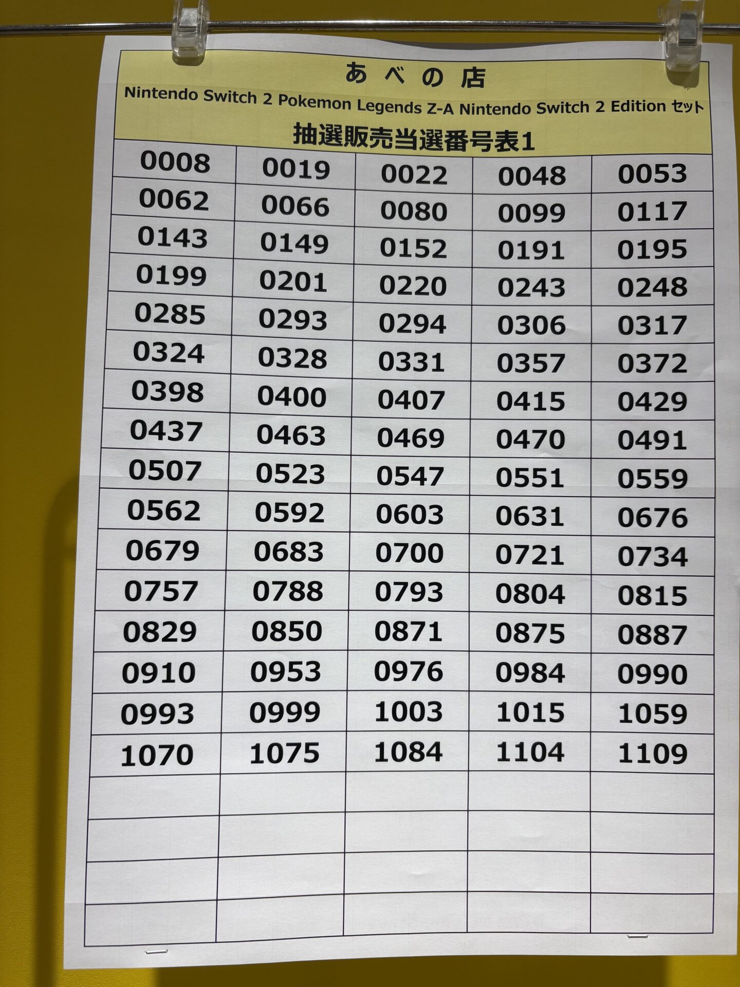 イトーヨーカドー明石とアリア加古川のSwitch2ポケモンの当選番号わかる方いらっしゃいますか?よろしくお願いします。