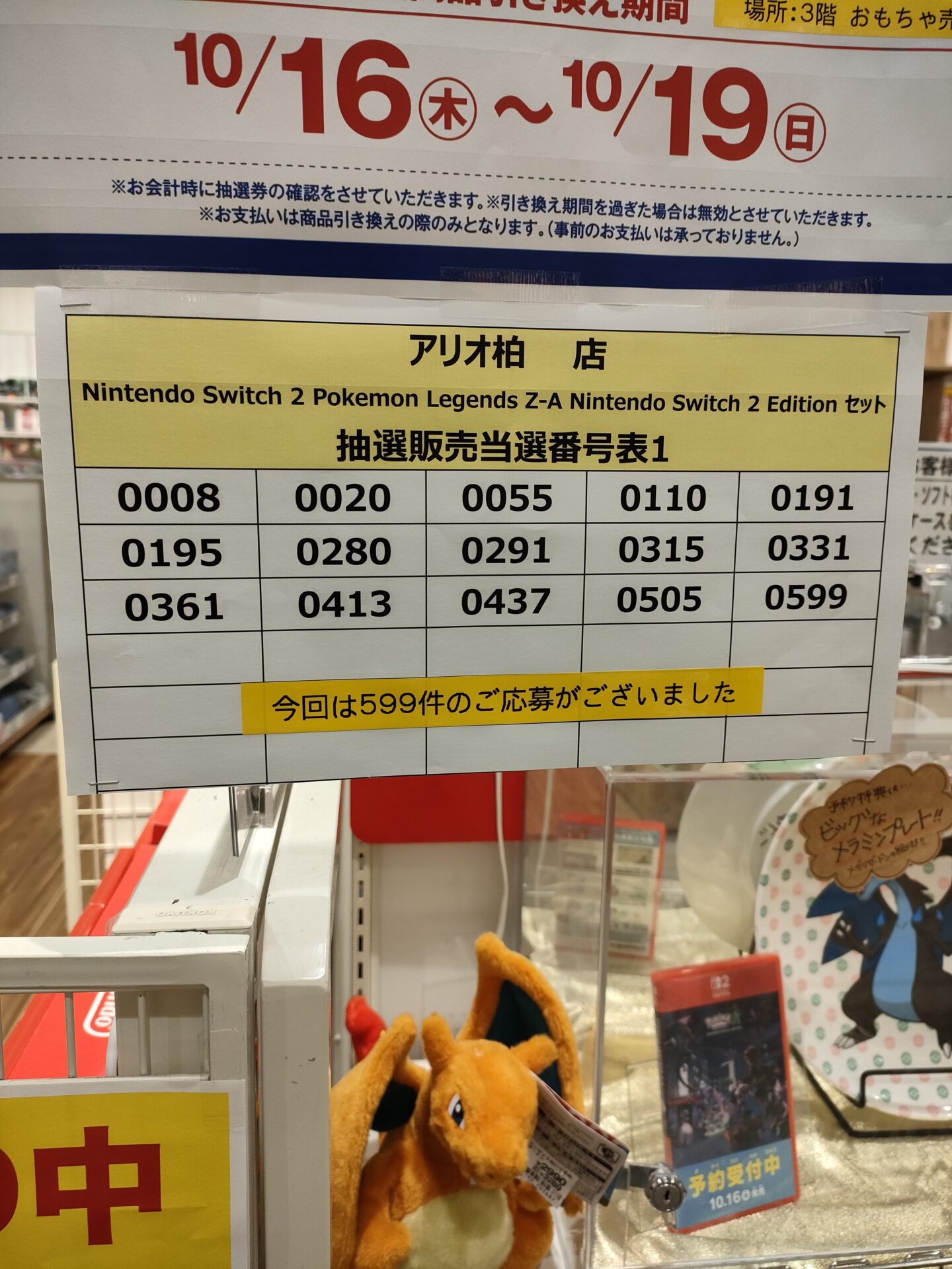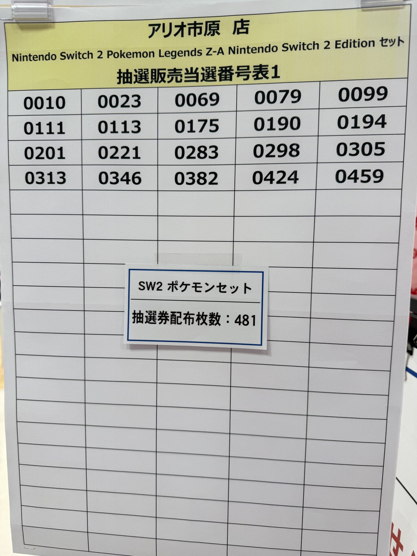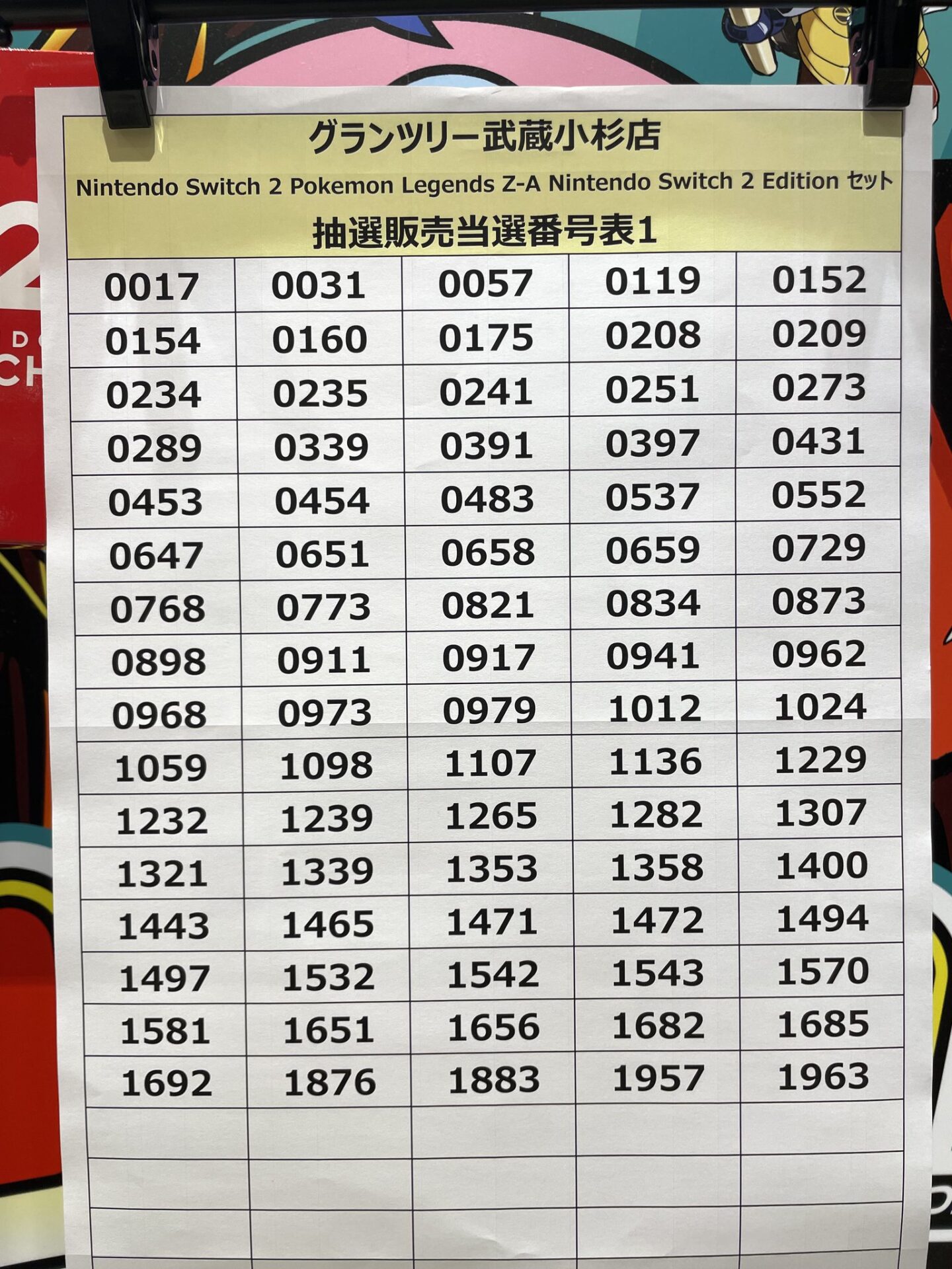 ポケモンレジェンズSwitch2当選番号(ららぽーと横浜)発表になりました!