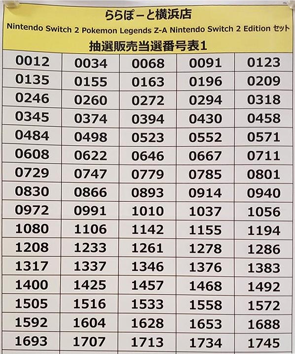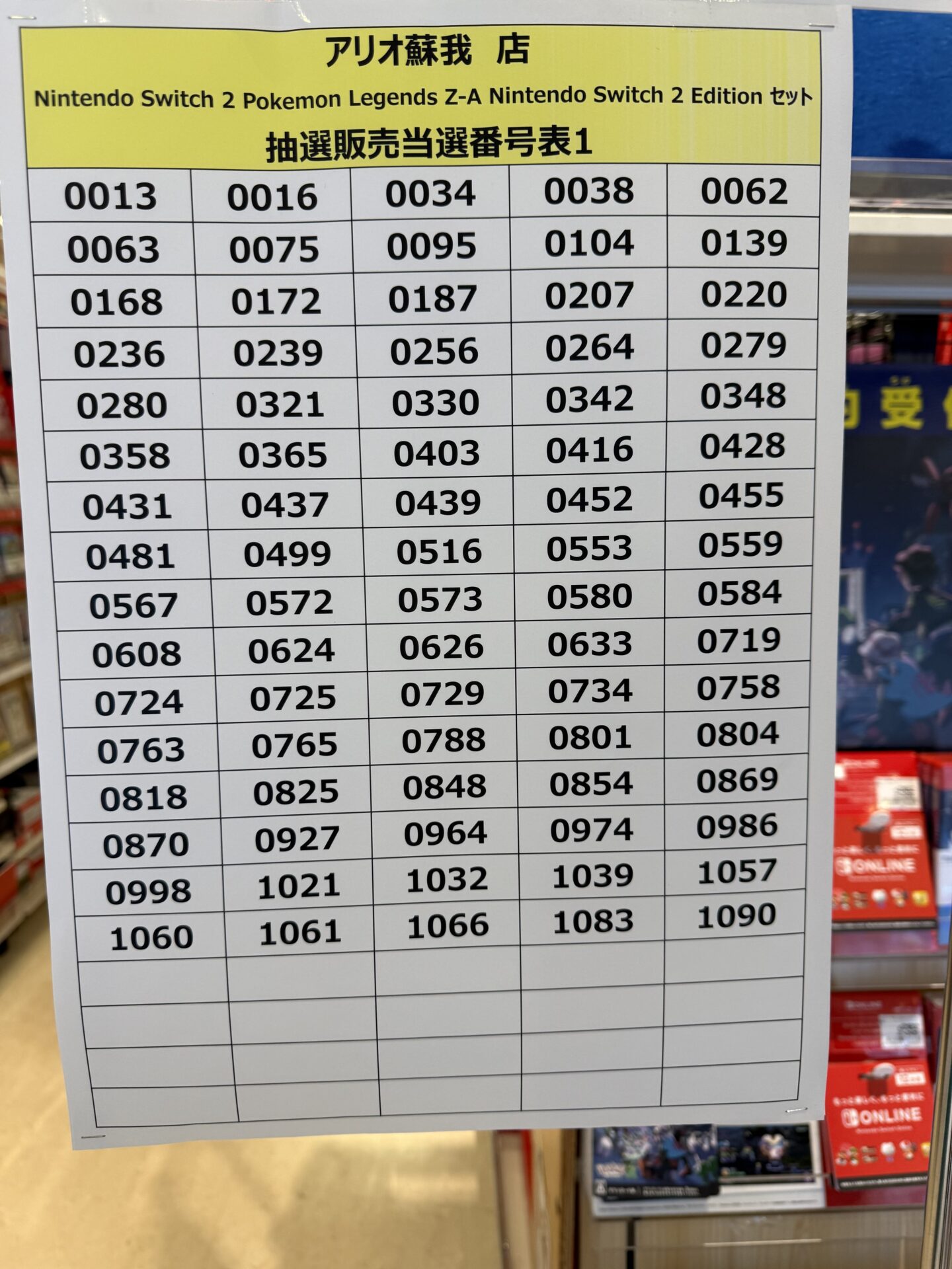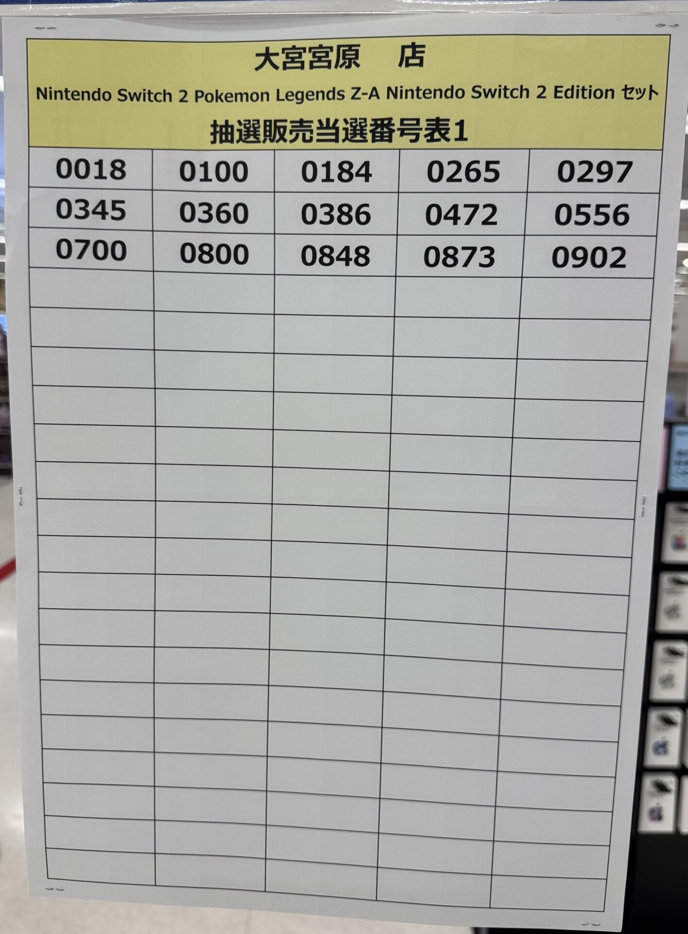 ポケモンレジェンズSwitch2当選番号(ららぽーと横浜)発表になりました!