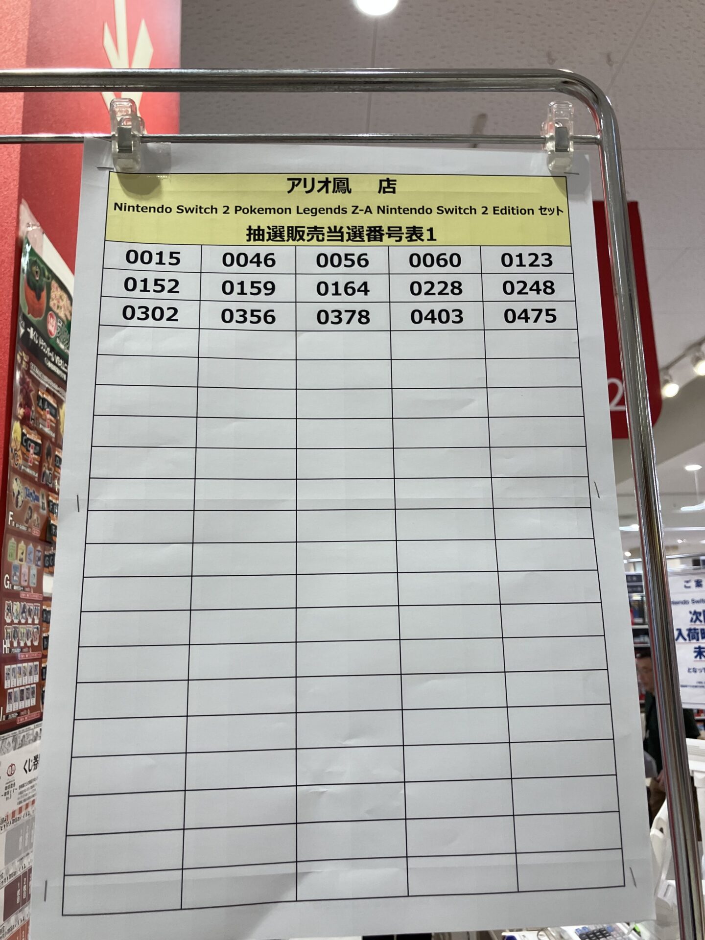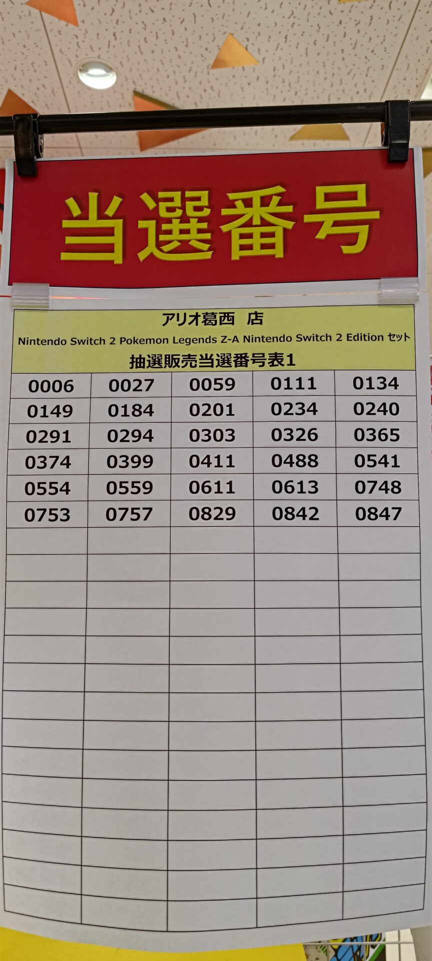 アリオ北砂店のswitch2の当選番号わかる方いましたらお願いします!