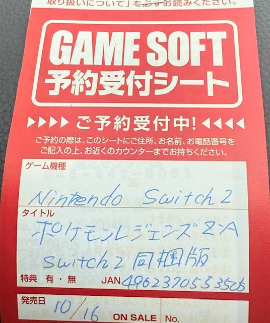 ヤマダ港北センター店、Switch2ポケモンレジェンズ、予約受付中。