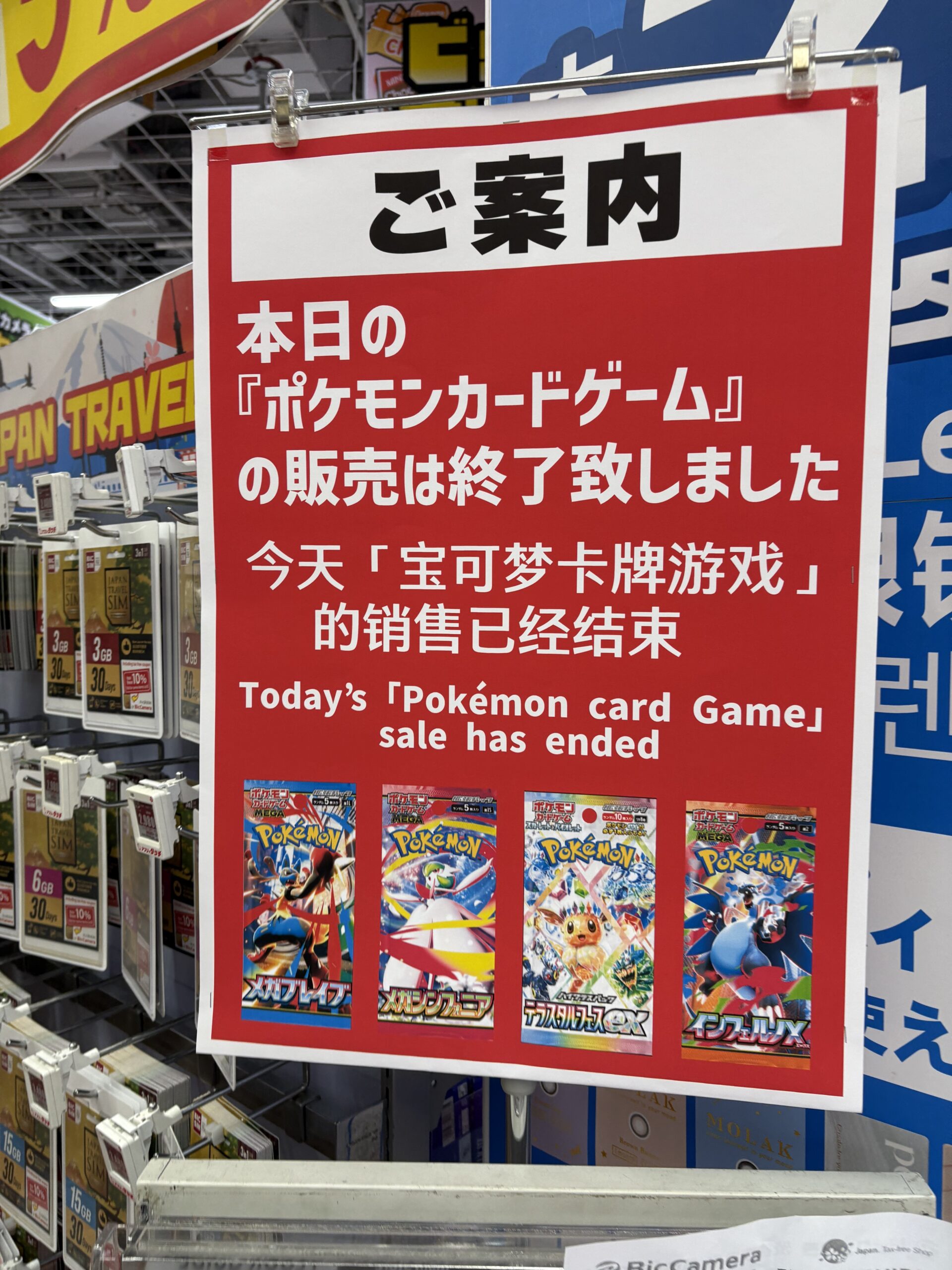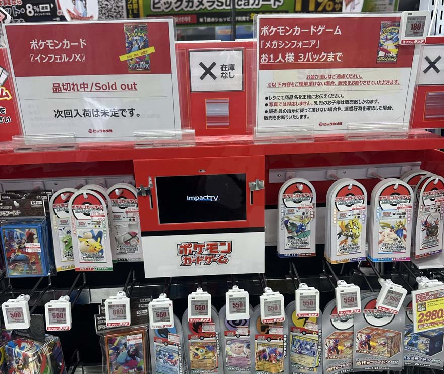 ビックカメラやコジマ店舗でも、毎週の様にポケモンカード、ワンピースカード、遊戯王カードの店頭販売が行われています。