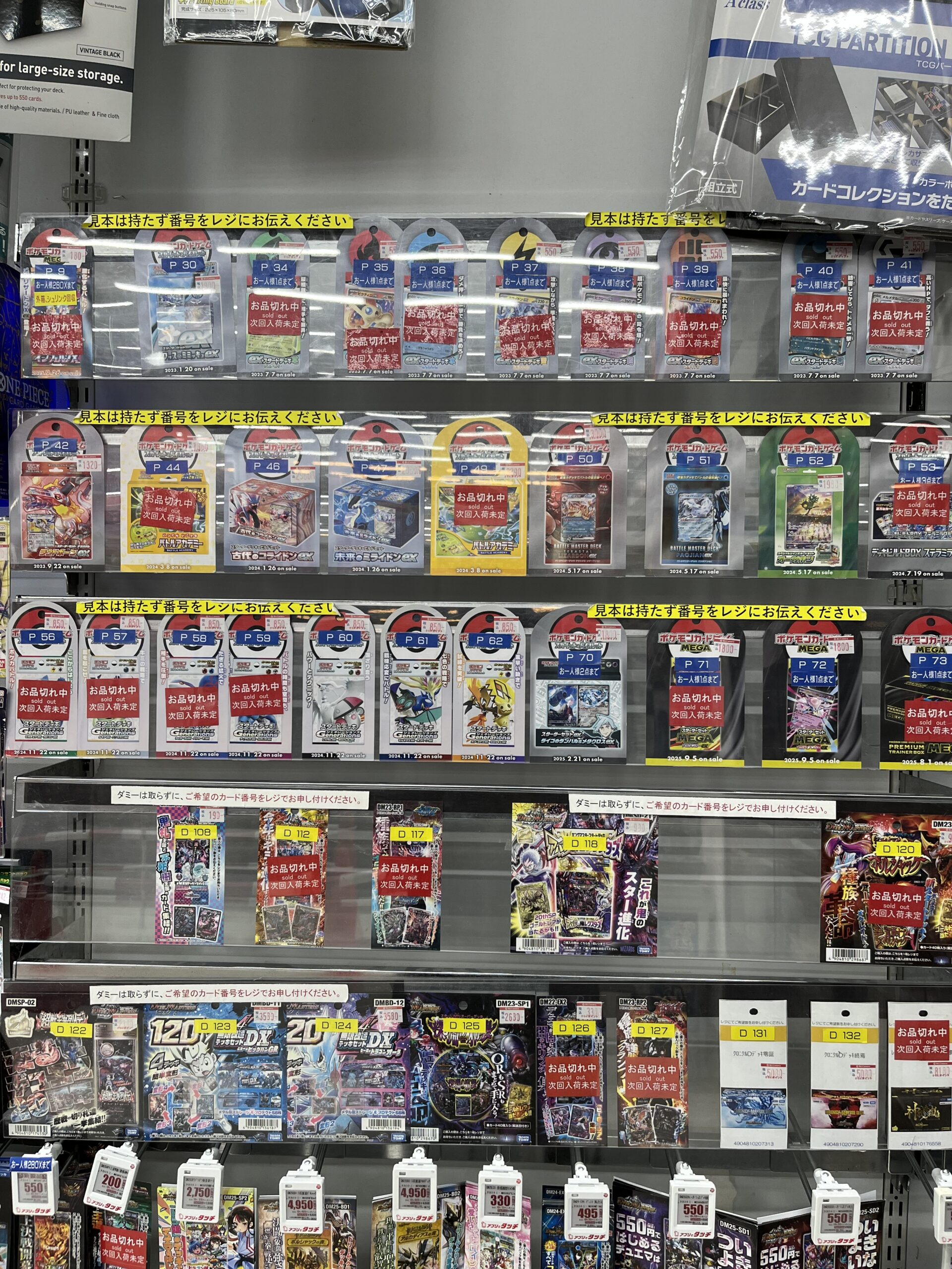 ビックカメラやコジマ店舗でも、毎週の様にポケモンカード、ワンピースカード、遊戯王カードの店頭販売が行われています。