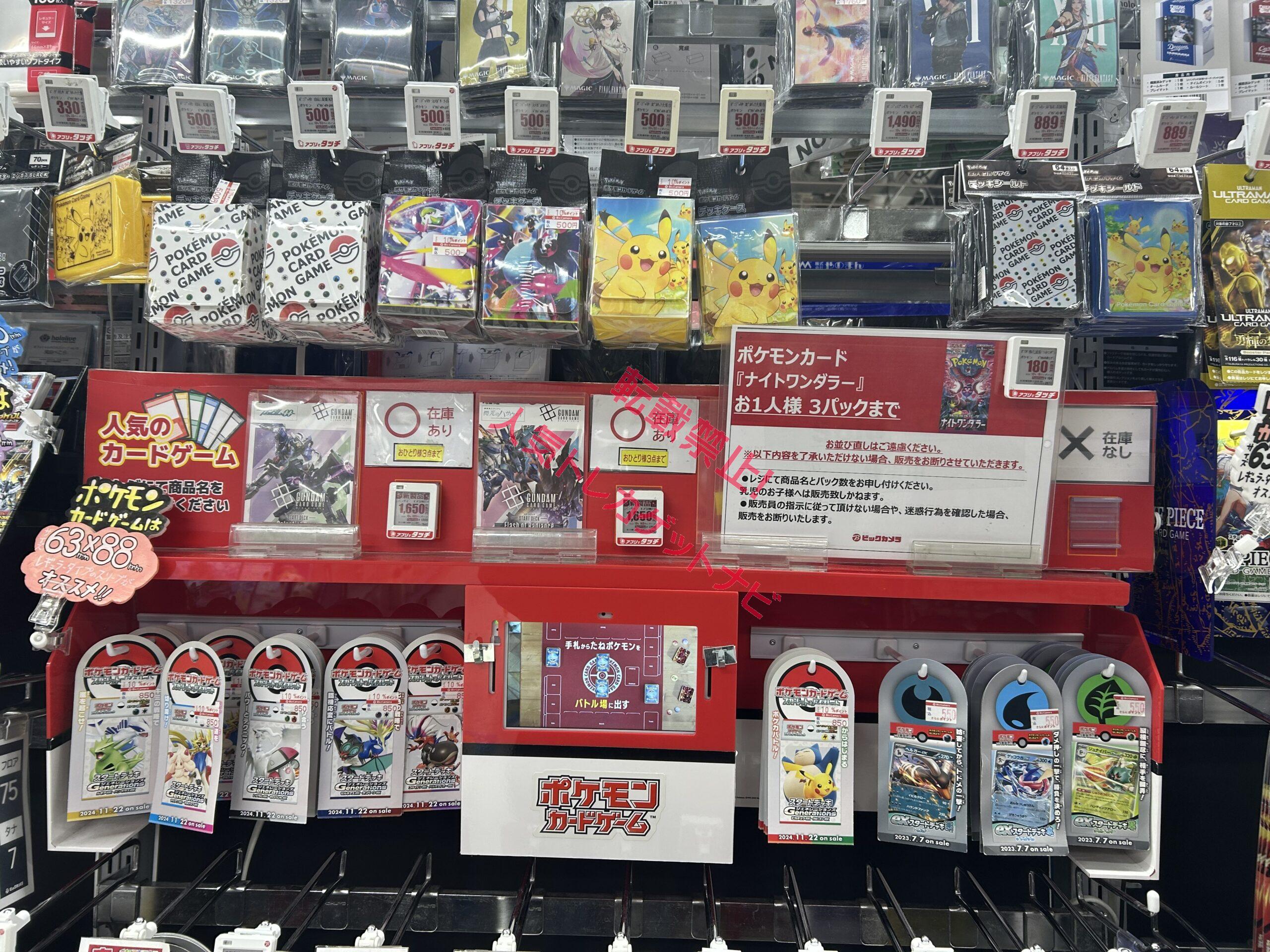 ビックカメラやコジマ店舗でも、毎週の様にポケモンカード、ワンピースカード、遊戯王カードの店頭販売が行われています。