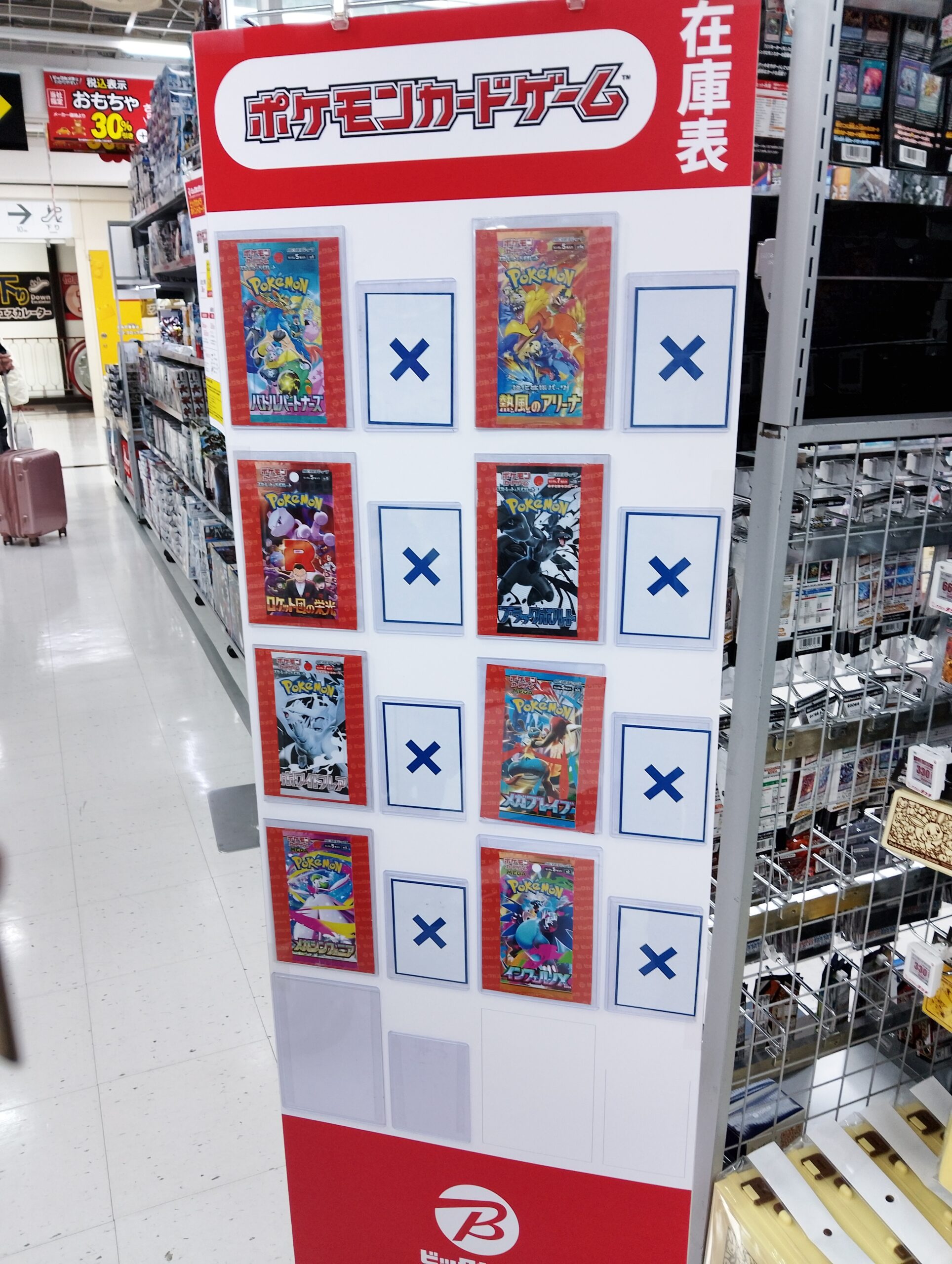 ビックカメラやコジマ店舗でも、毎週の様にポケモンカード、ワンピースカード、遊戯王カードの店頭販売が行われています。