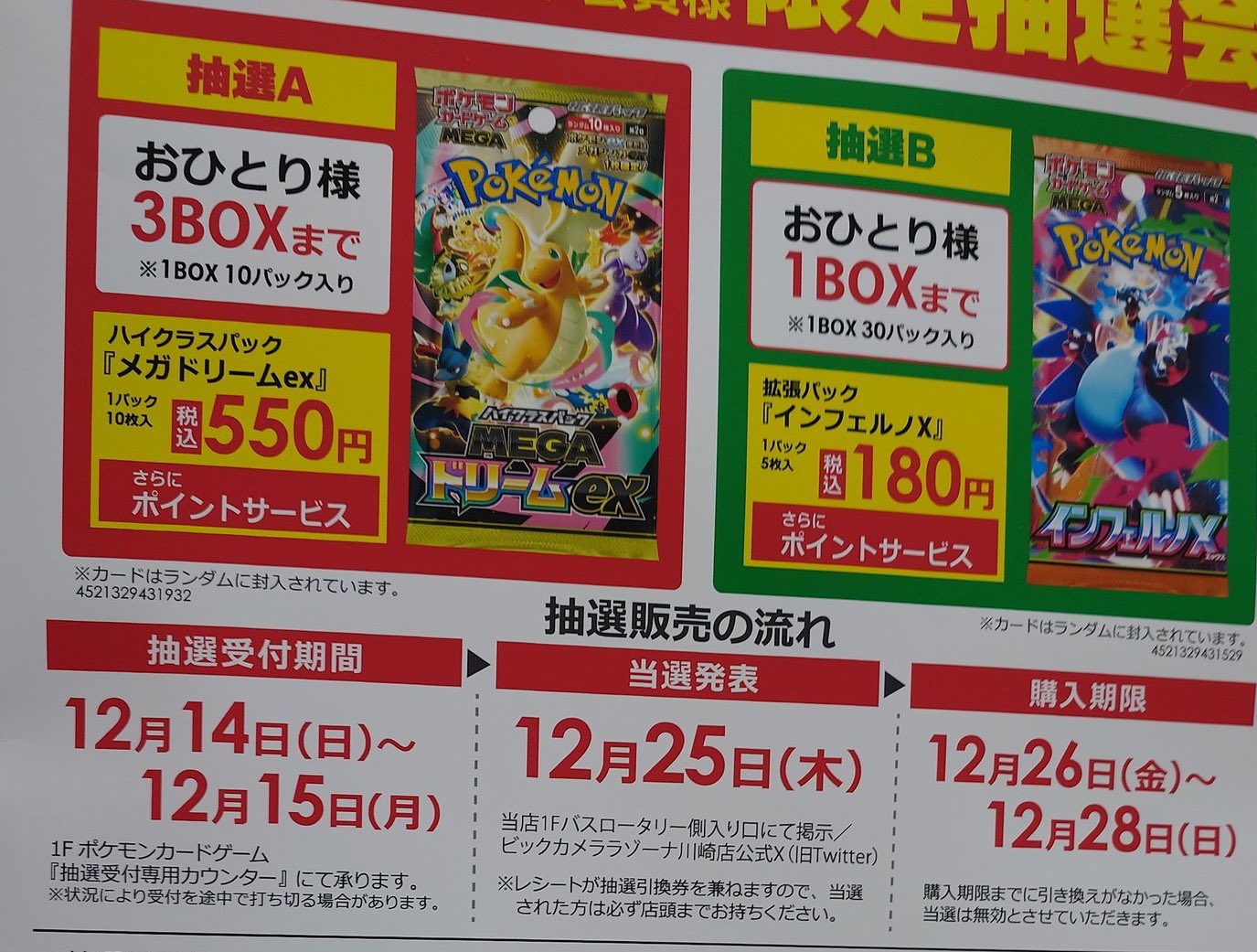 『ビックカメラ(コジマ含む)』店頭でのポケカ、ワンピースカード、遊戯王カードのゲリラ販売情報。転売屋に負けずに定価入手する為の支援を実施✨