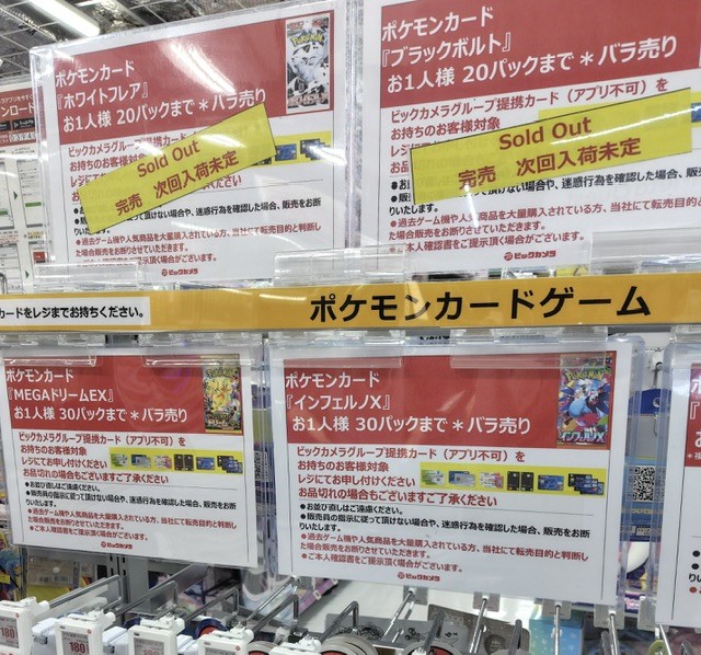 ビックカメラやコジマ店舗でも、毎週の様にポケモンカード、ワンピースカード、遊戯王カードの店頭販売が行われています。
