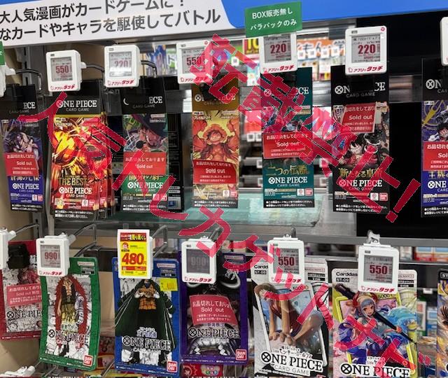 ビックカメラやコジマ店舗でも、毎週の様にポケモンカード、ワンピースカード、遊戯王カードの店頭販売が行われています。