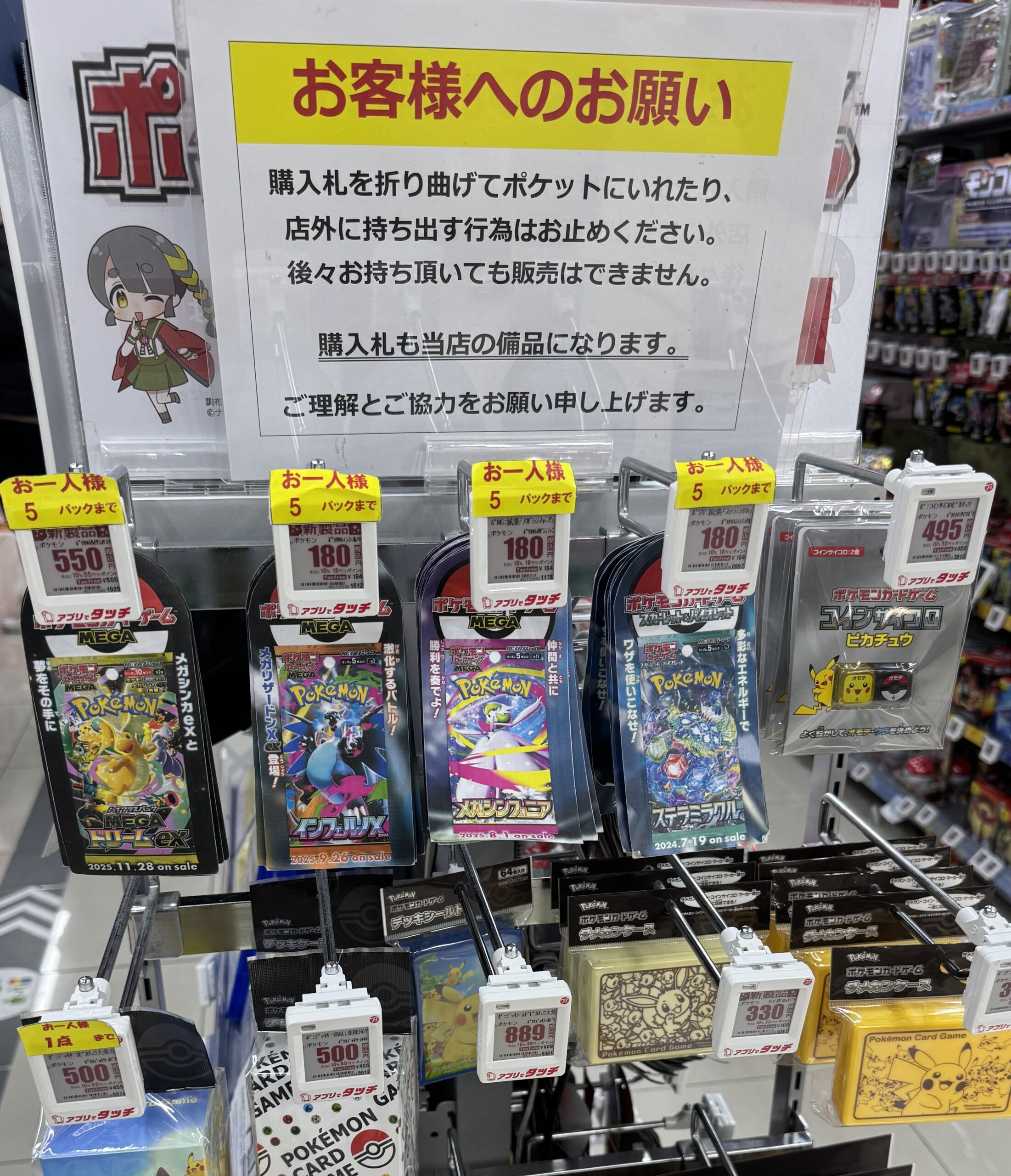 ビックカメラやコジマ店舗でも、毎週の様にポケモンカード、ワンピースカード、遊戯王カードの店頭販売が行われています。