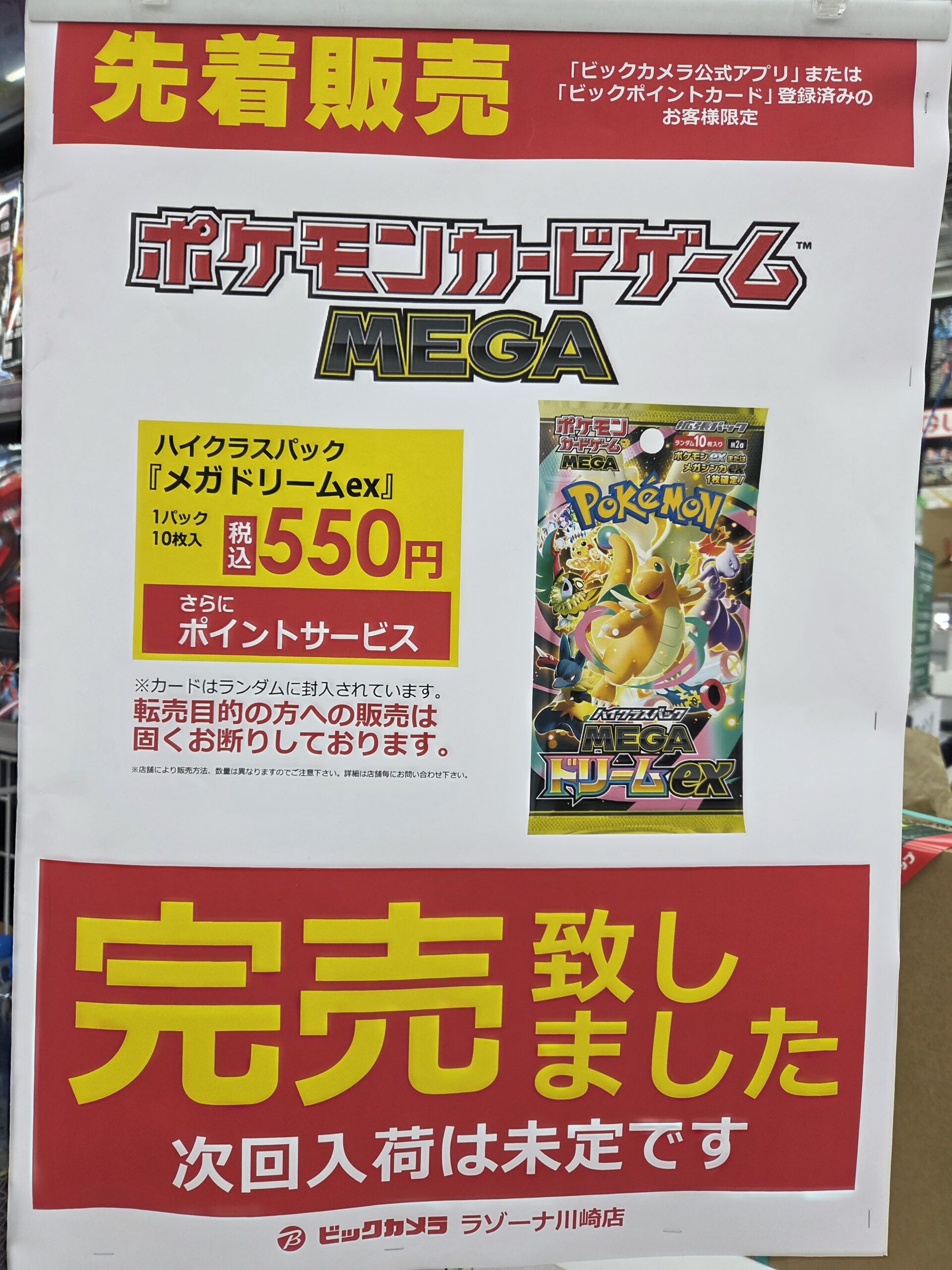 『ビックカメラ(コジマ含む)』店頭でのポケカ、ワンピースカード、遊戯王カードのゲリラ販売情報。転売屋に負けずに定価入手する為の支援を実施✨