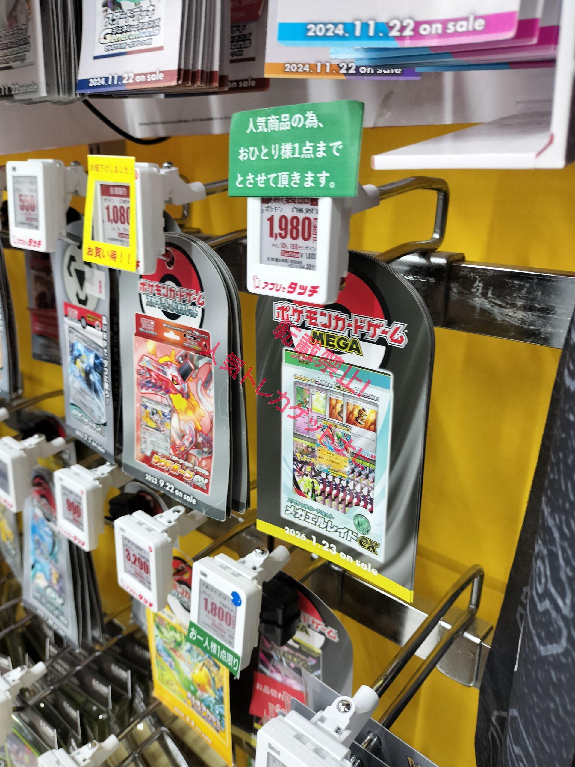 ビックカメラやコジマ店舗でも、毎週の様にポケモンカード、ワンピースカード、遊戯王カードの店頭販売が行われています。