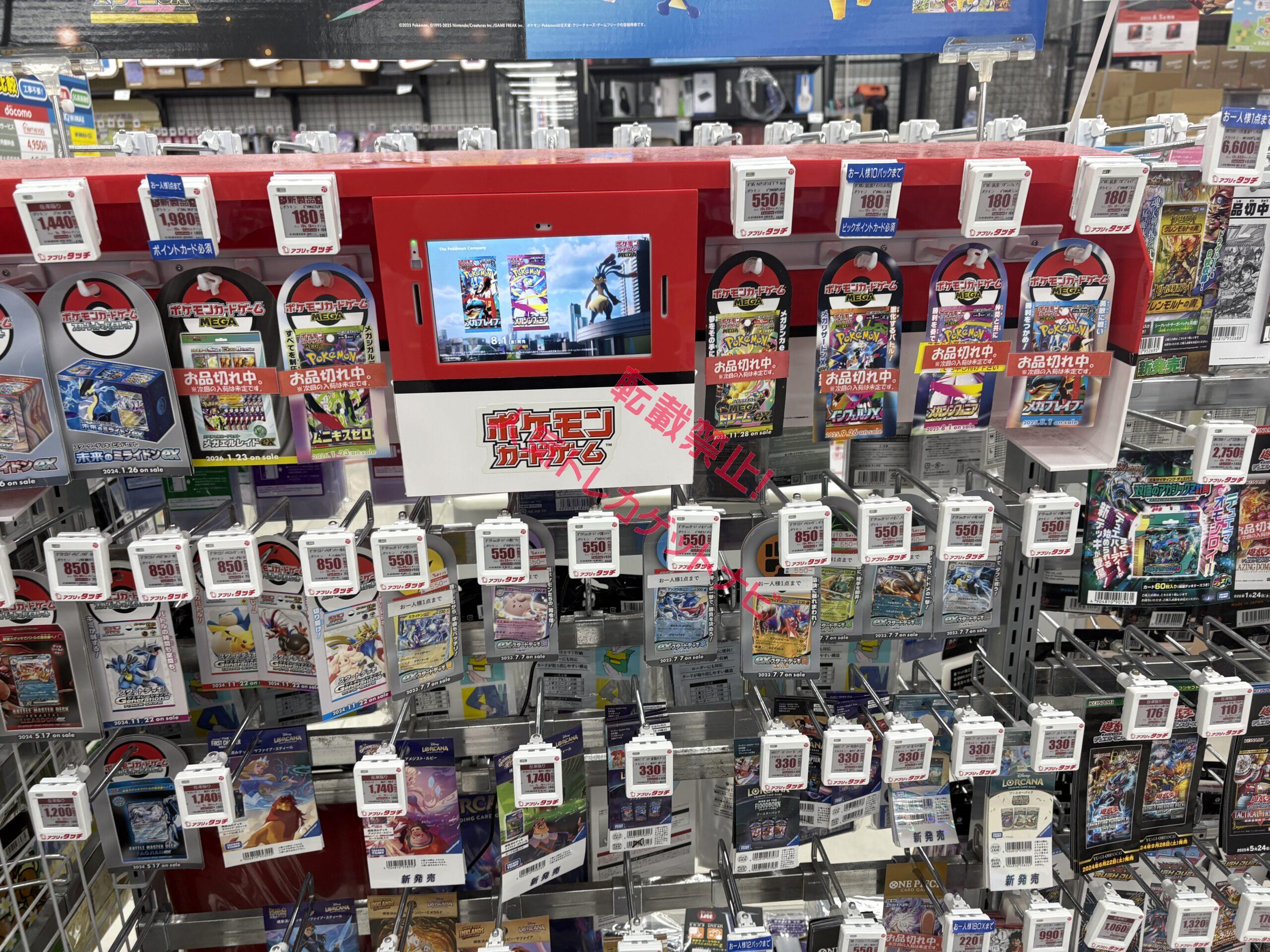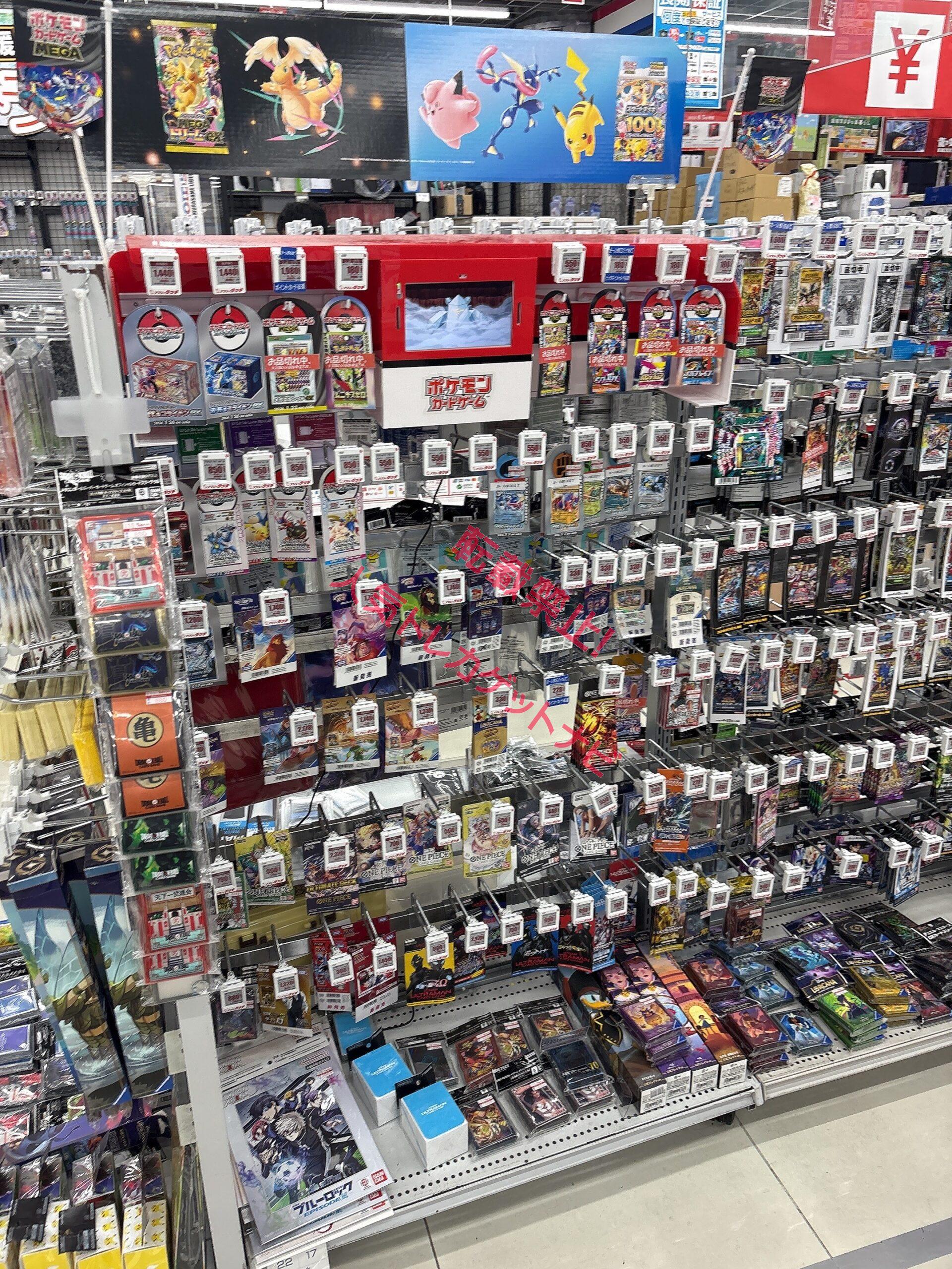 ビックカメラやコジマ店舗でも、毎週の様にポケモンカード、ワンピースカード、遊戯王カードの店頭販売が行われています。