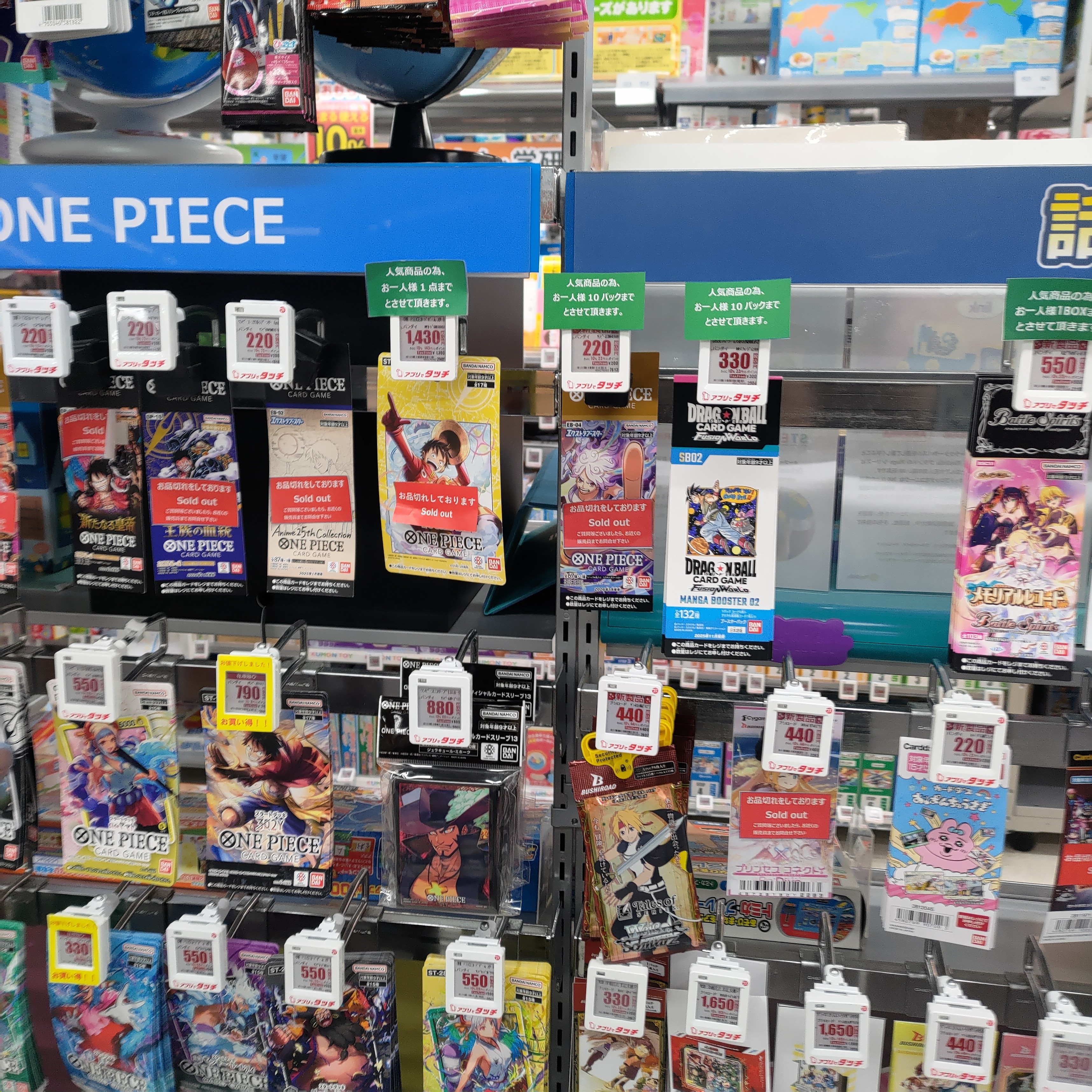 ビックカメラやコジマ店舗でも、毎週の様にポケモンカード、ワンピースカード、遊戯王カードの店頭販売が行われています。