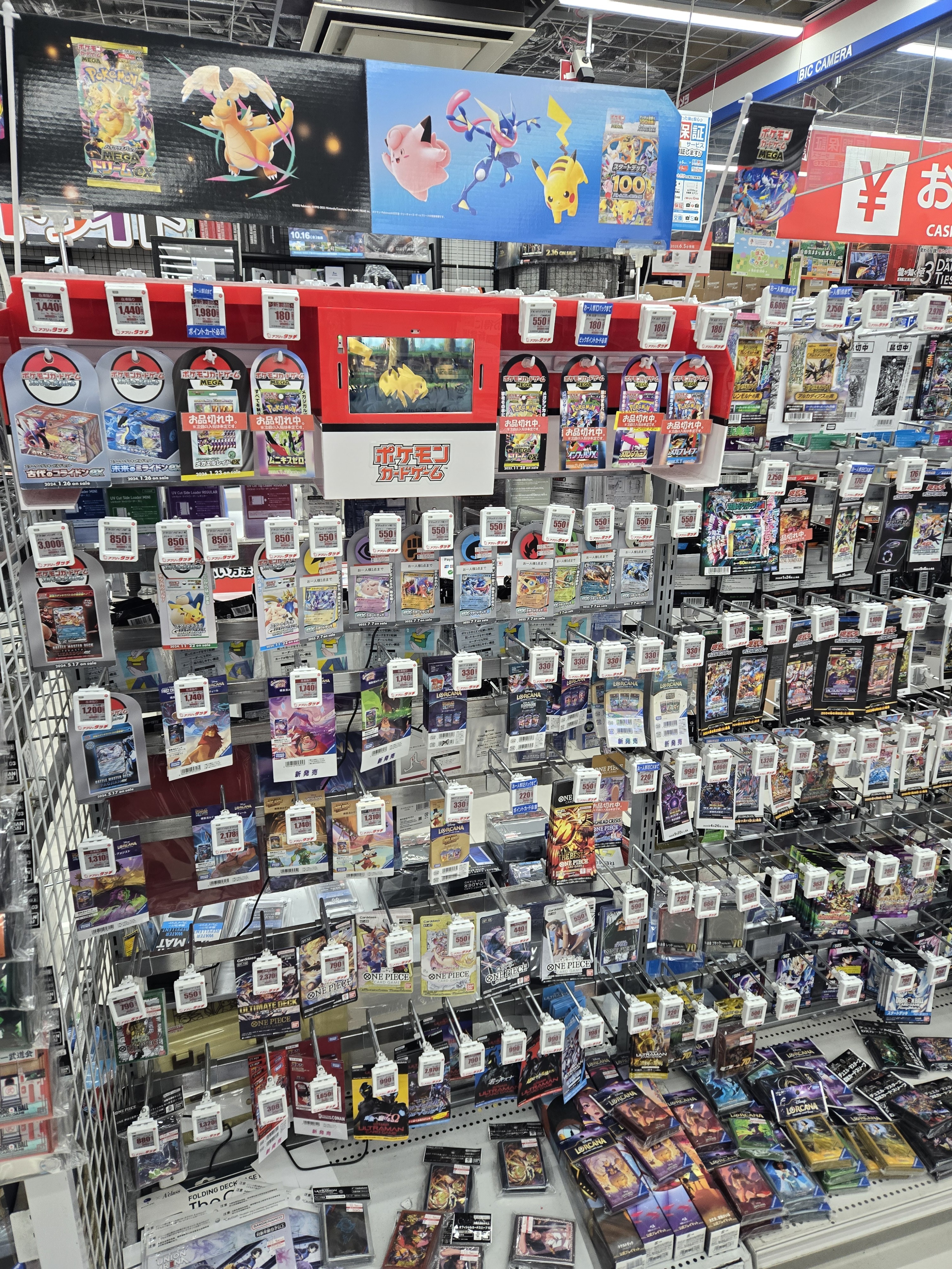 ビックカメラやコジマ店舗でも、毎週の様にポケモンカード、ワンピースカード、遊戯王カードの店頭販売が行われています。