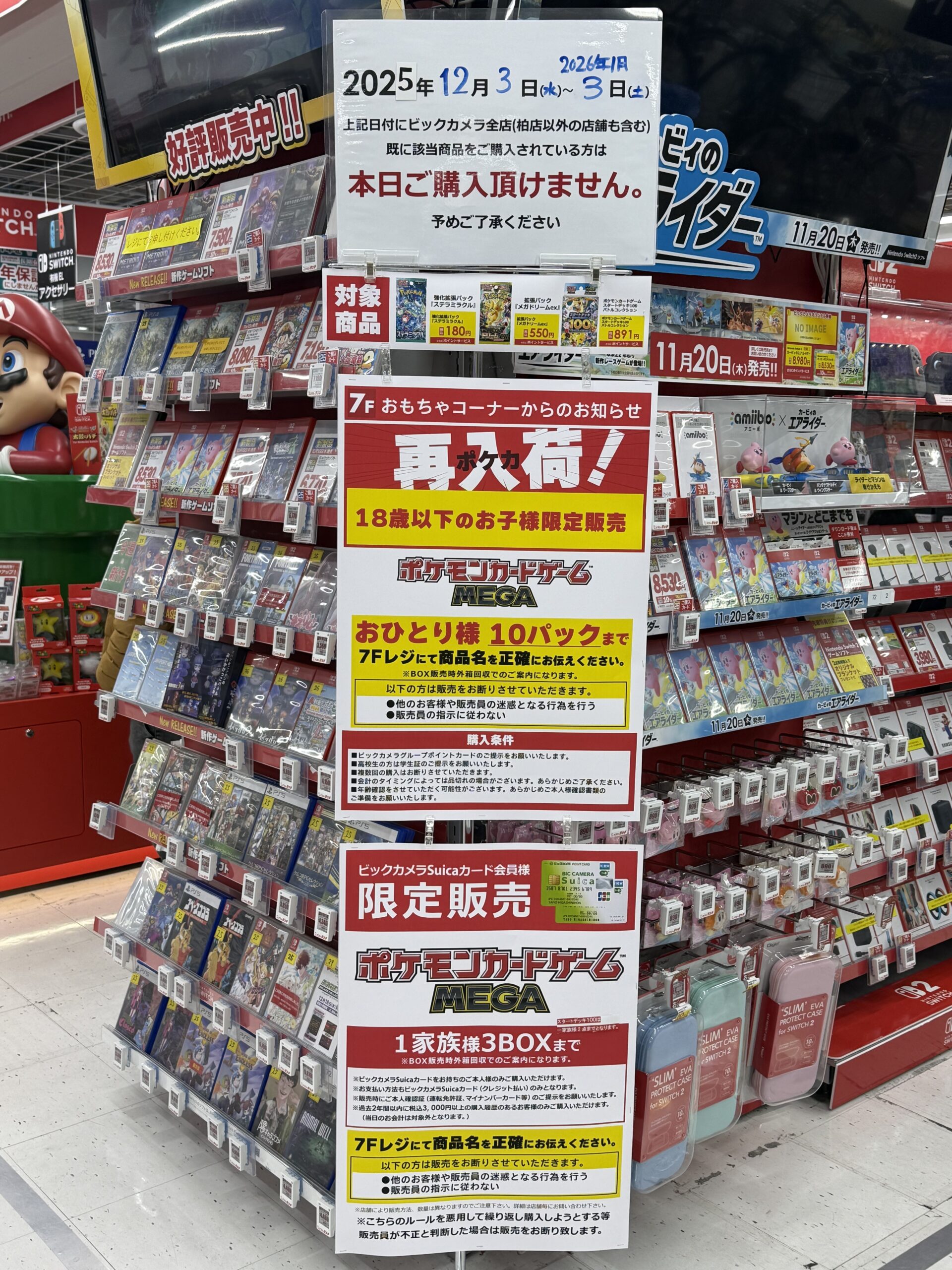 『ビックカメラ(コジマ含む)』店頭でのポケカ、ワンピースカード、遊戯王カードのゲリラ販売情報。転売屋に負けずに定価入手する為の支援を実施✨