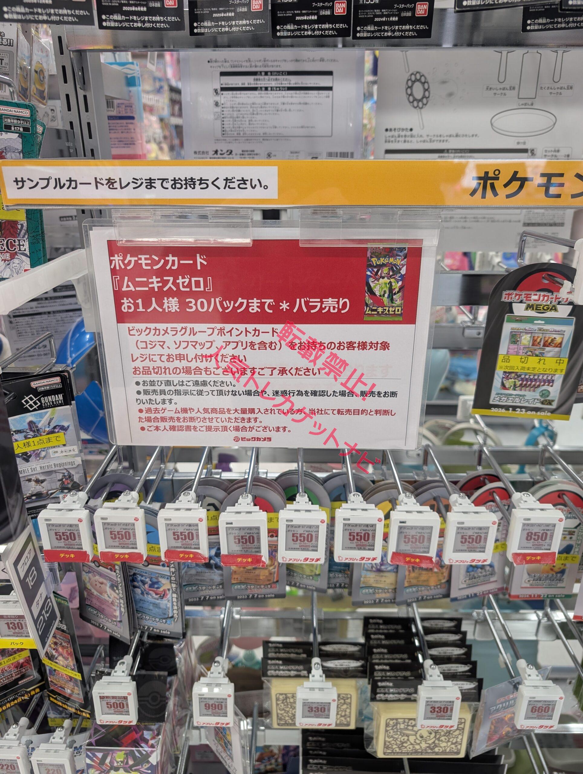 ビックカメラのおもちゃ、玩具取り扱い店舗であれば、トレカの販売を実施しています。コジマも同様。下記の販売履歴は、コジマ含まず、ビックカメラのみ!