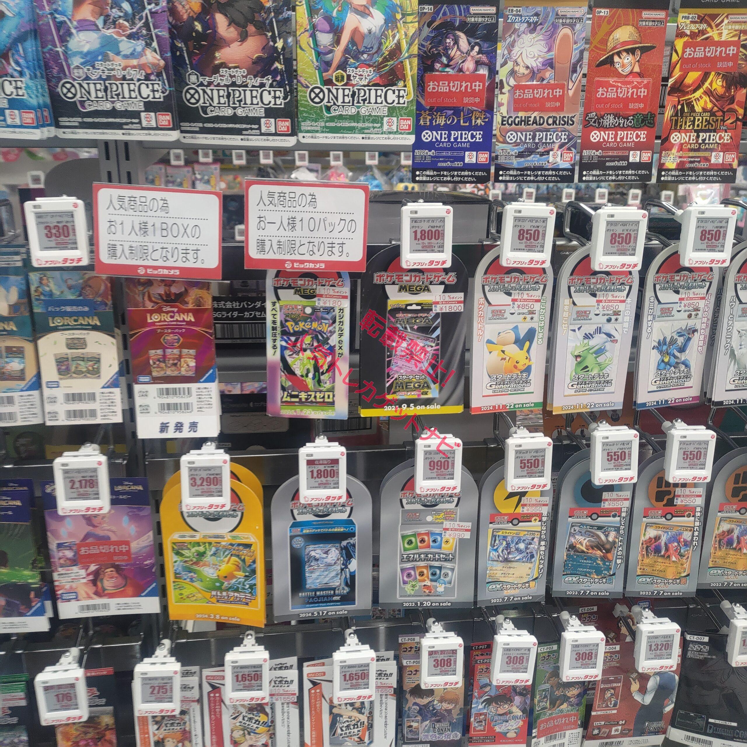 ビックカメラやコジマ店舗でも、毎週の様にポケモンカード、ワンピースカード、遊戯王カードの店頭販売が行われています。