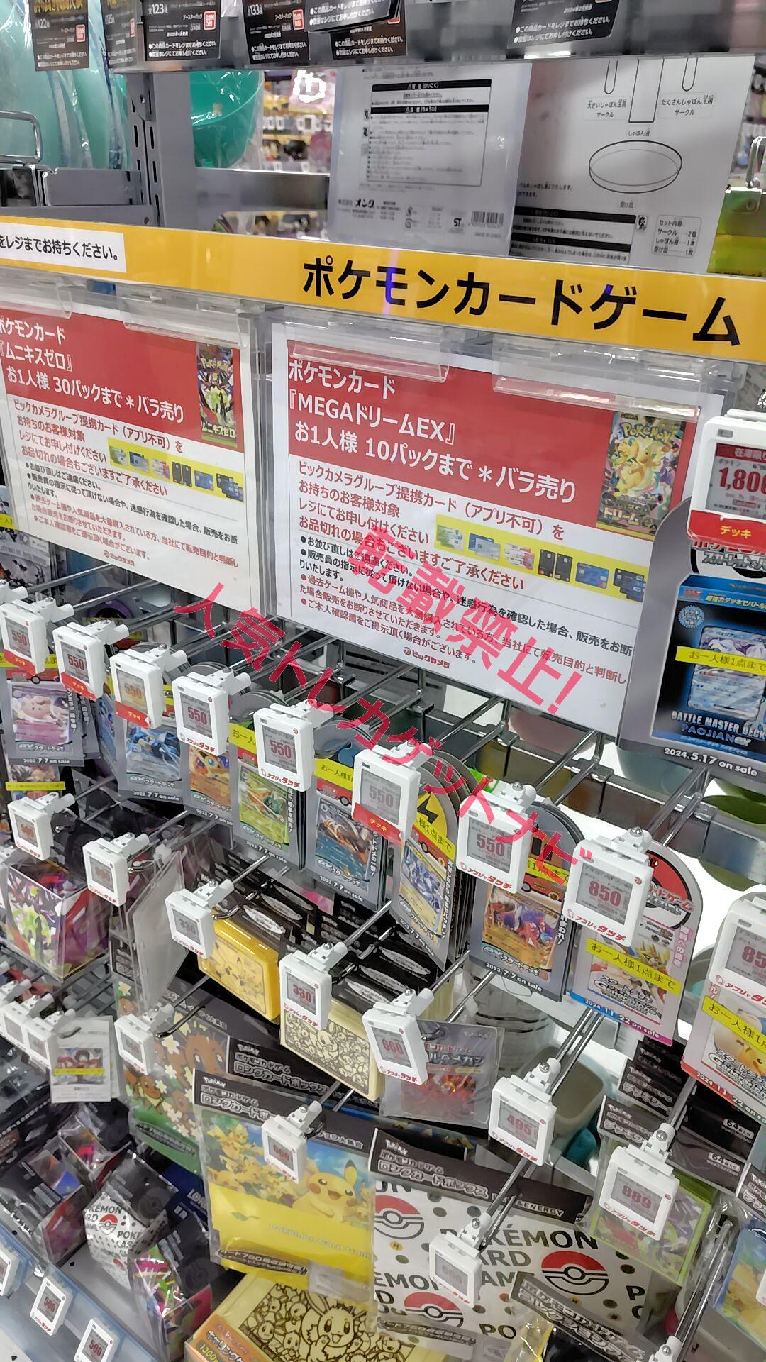 ビックカメラやコジマ店舗でも、毎週の様にポケモンカード、ワンピースカード、遊戯王カードの店頭販売が行われています。