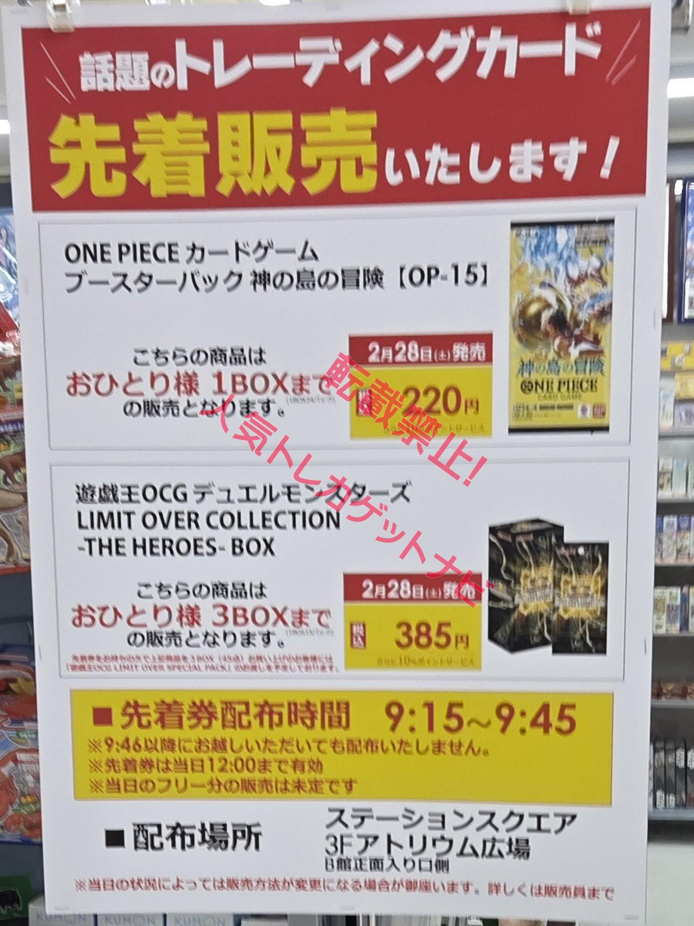 ビックカメラやコジマ店舗でも、毎週の様にポケモンカード、ワンピースカード、遊戯王カードの店頭販売が行われています。