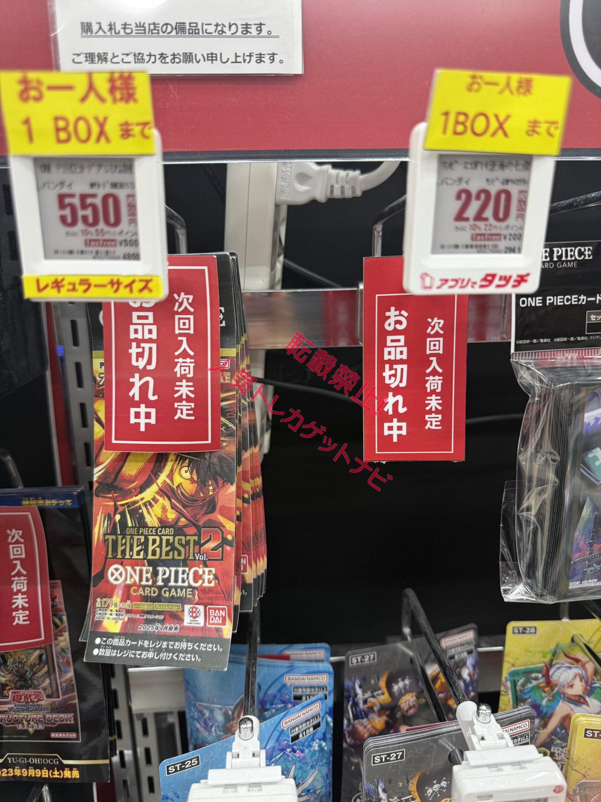 ビックカメラやコジマ店舗でも、毎週の様にポケモンカード、ワンピースカード、遊戯王カードの店頭販売が行われています。