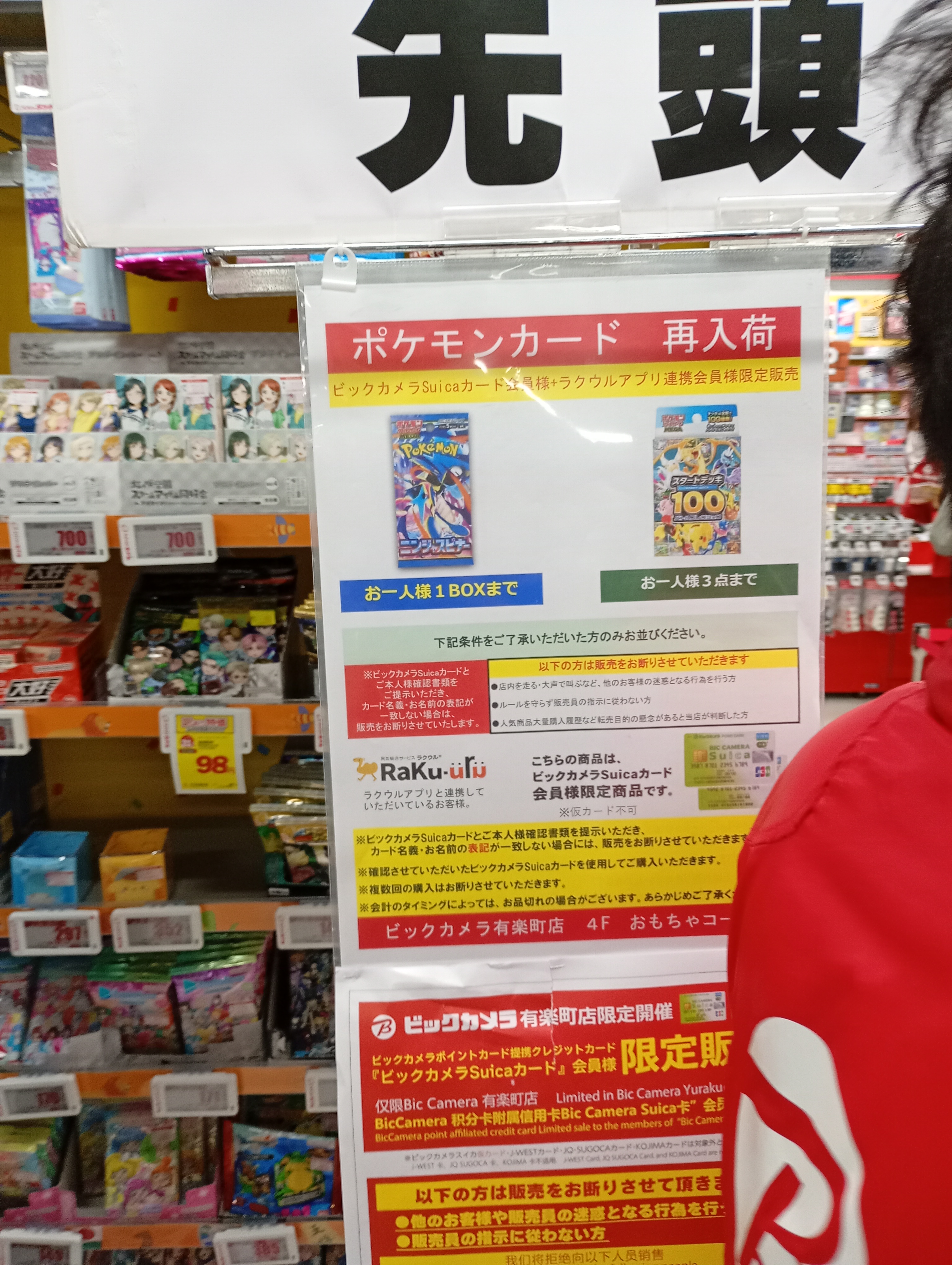 ビックカメラやコジマ店舗でも、毎週の様にポケモンカード、ワンピースカード、遊戯王カードの店頭販売が行われています。