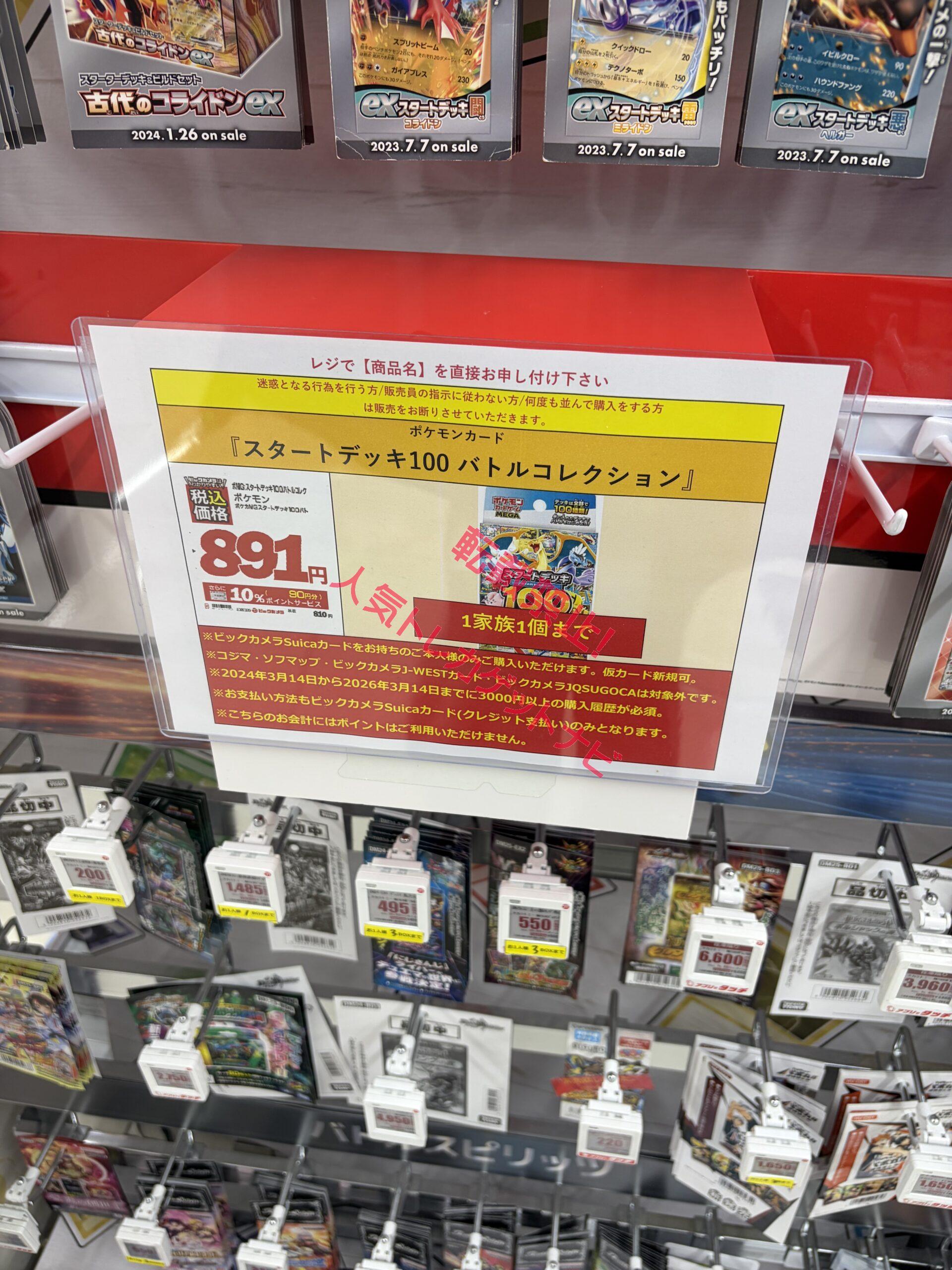 ビックカメラやコジマ店舗でも、毎週の様にポケモンカード、ワンピースカード、遊戯王カードの店頭販売が行われています。
