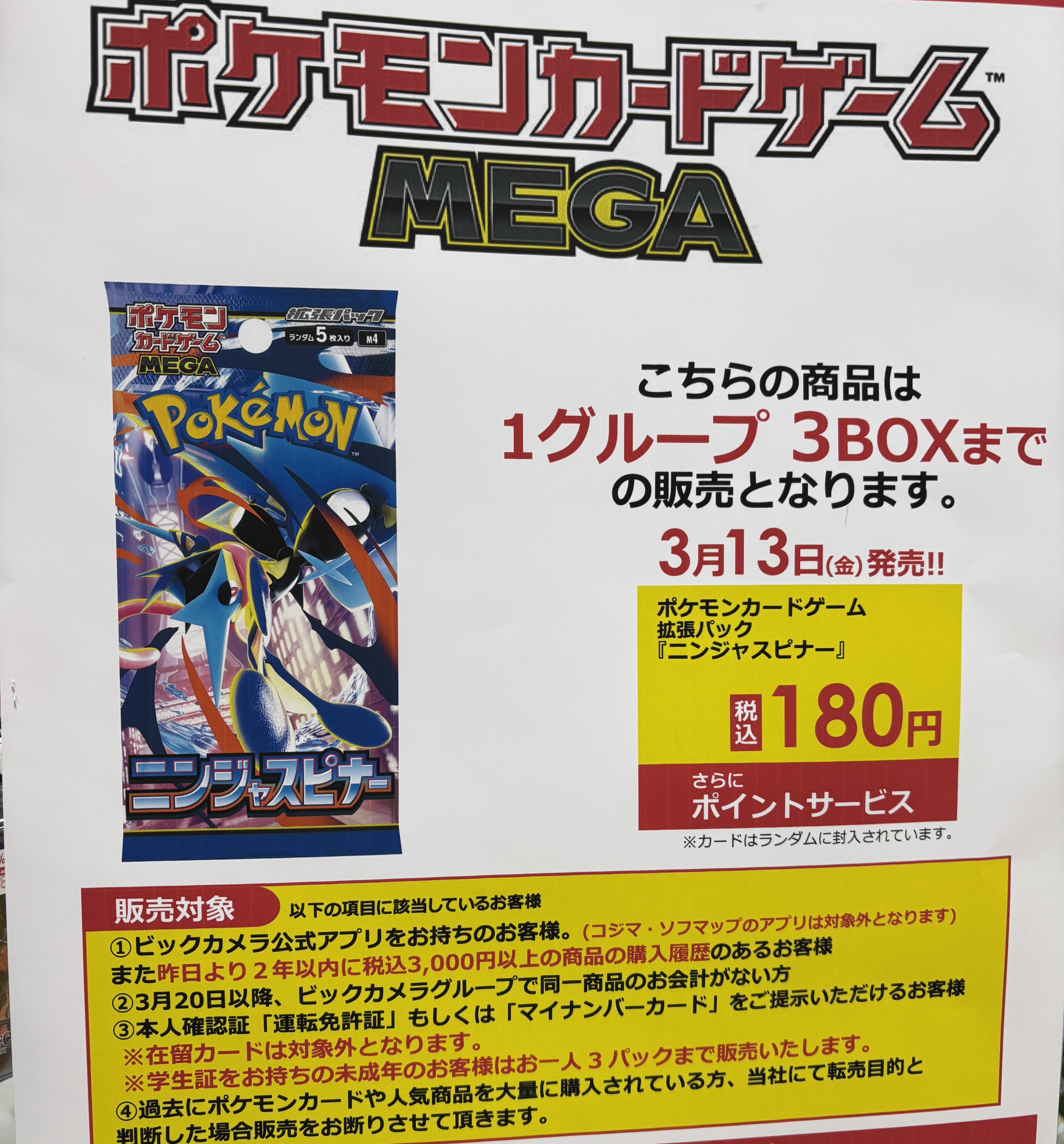 『ビックカメラ(コジマ含む)』店頭でのポケカ、ワンピースカード、遊戯王カードのゲリラ販売情報。転売屋に負けずに定価入手する為の支援を実施✨