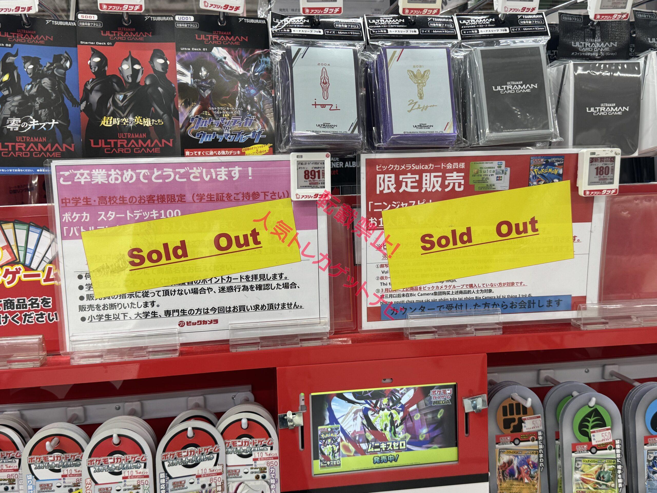 ビックカメラやコジマ店舗でも、毎週の様にポケモンカード、ワンピースカード、遊戯王カードの店頭販売が行われています。
