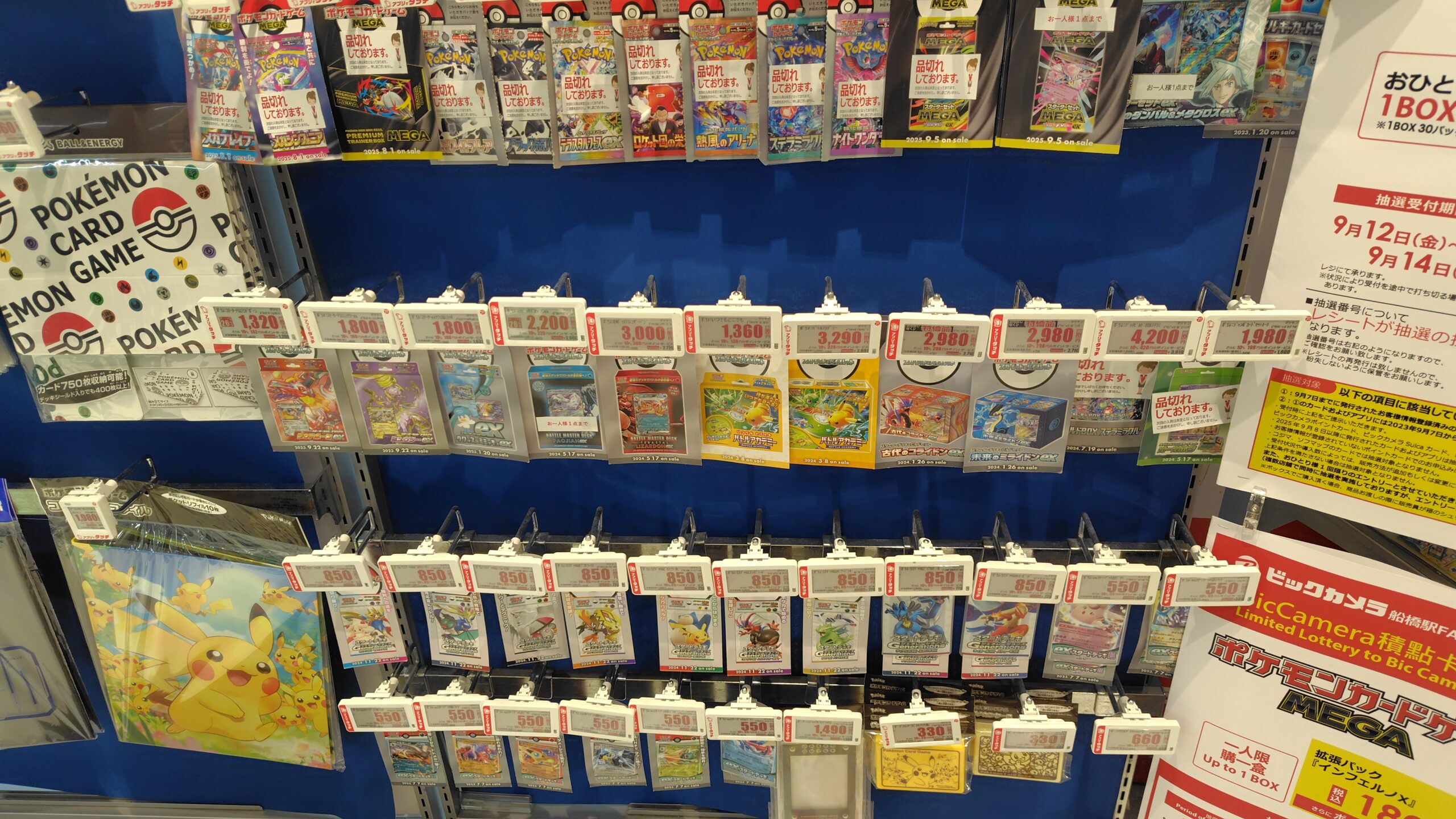 ビックカメラやコジマ店舗でも、毎週の様にポケモンカード、ワンピースカード、遊戯王カードの店頭販売が行われています。