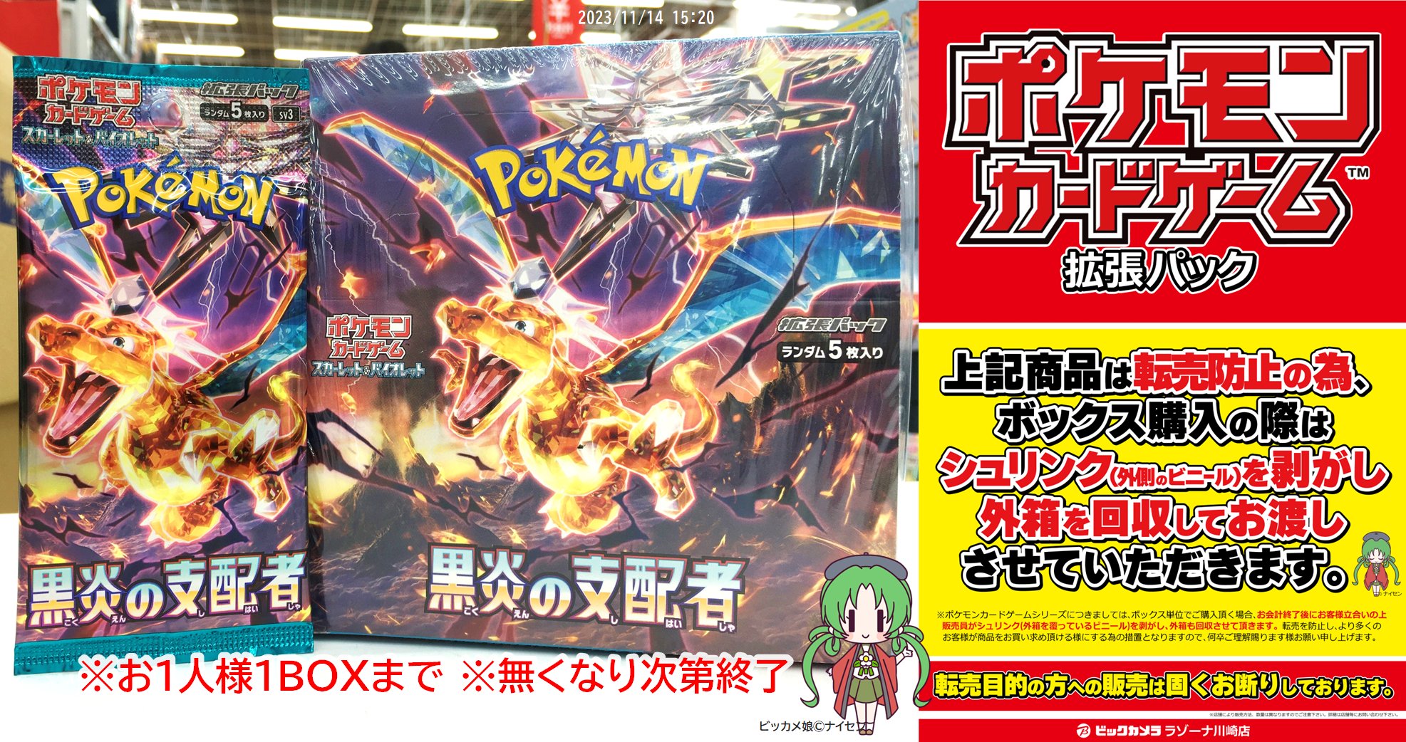 ビックカメラやコジマ店舗でも、毎週の様にポケモンカード、ワンピースカード、遊戯王カードの店頭販売が行われています。