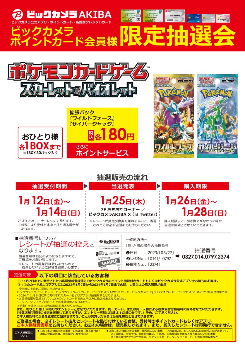 『ビックカメラ(コジマ含む)』店頭でのポケカ、ワンピースカード、遊戯王カードのゲリラ販売情報。転売屋に負けずに定価入手する為の支援を実施✨