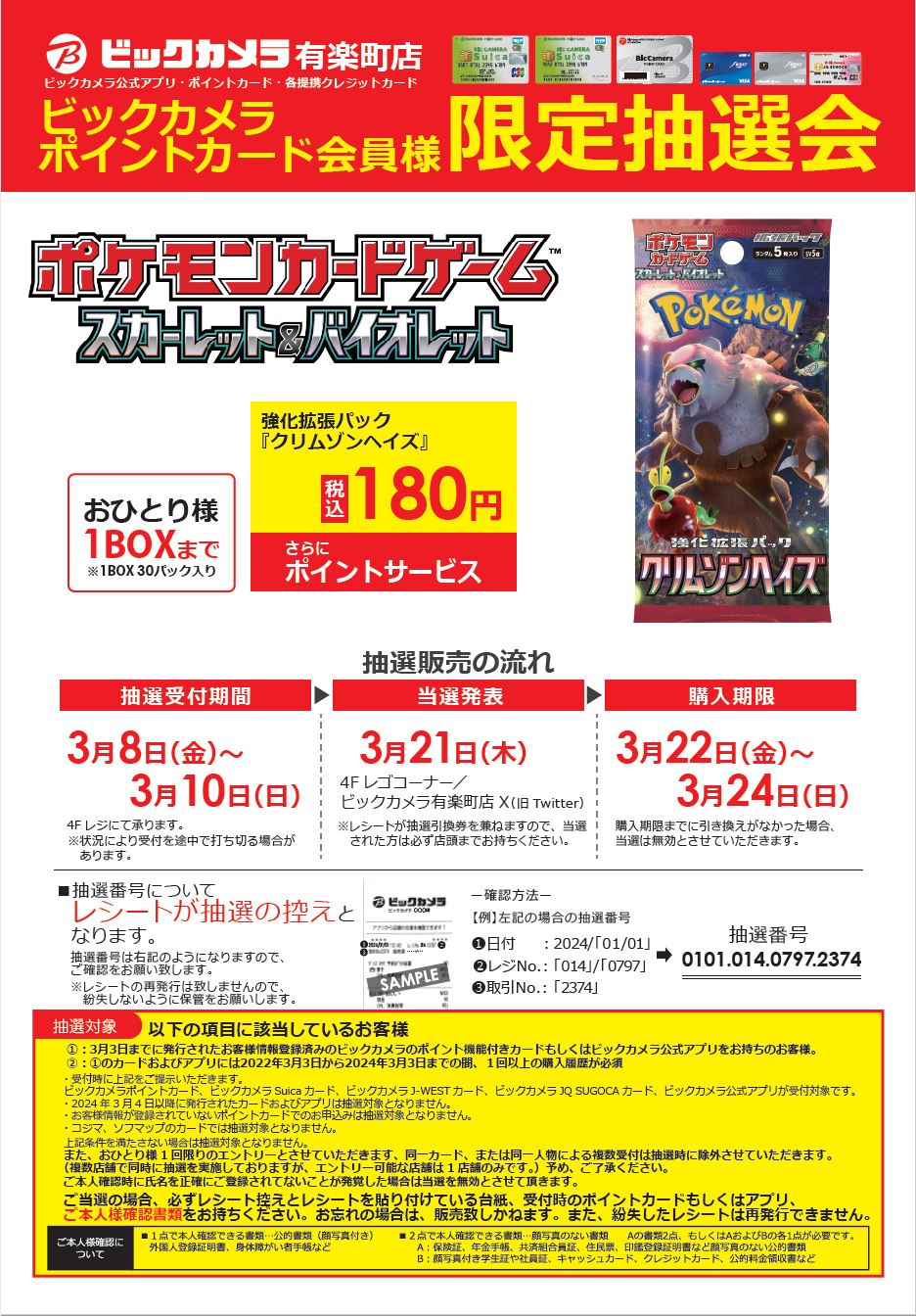 『ビックカメラ(コジマ含む)』店頭でのポケカ、ワンピースカード、遊戯王カードのゲリラ販売情報。転売屋に負けずに定価入手する為の支援を実施✨
