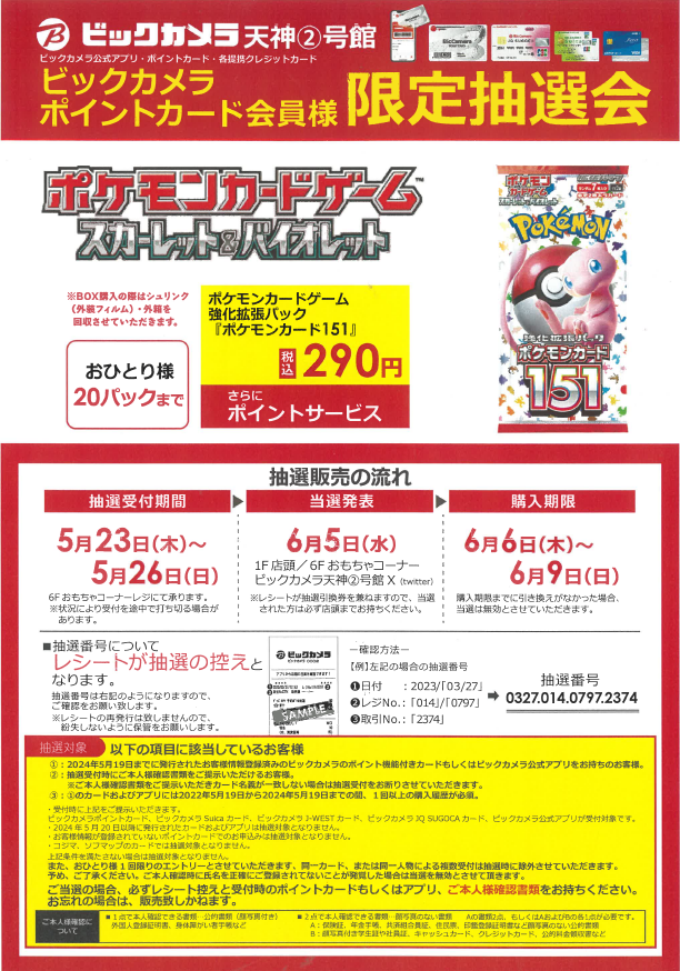 前回はトイザらスや晴れる屋2などは抽選無しでのポケカの新弾発売になりましたが、ビックカメラはまた抽選になるのでしょうか?