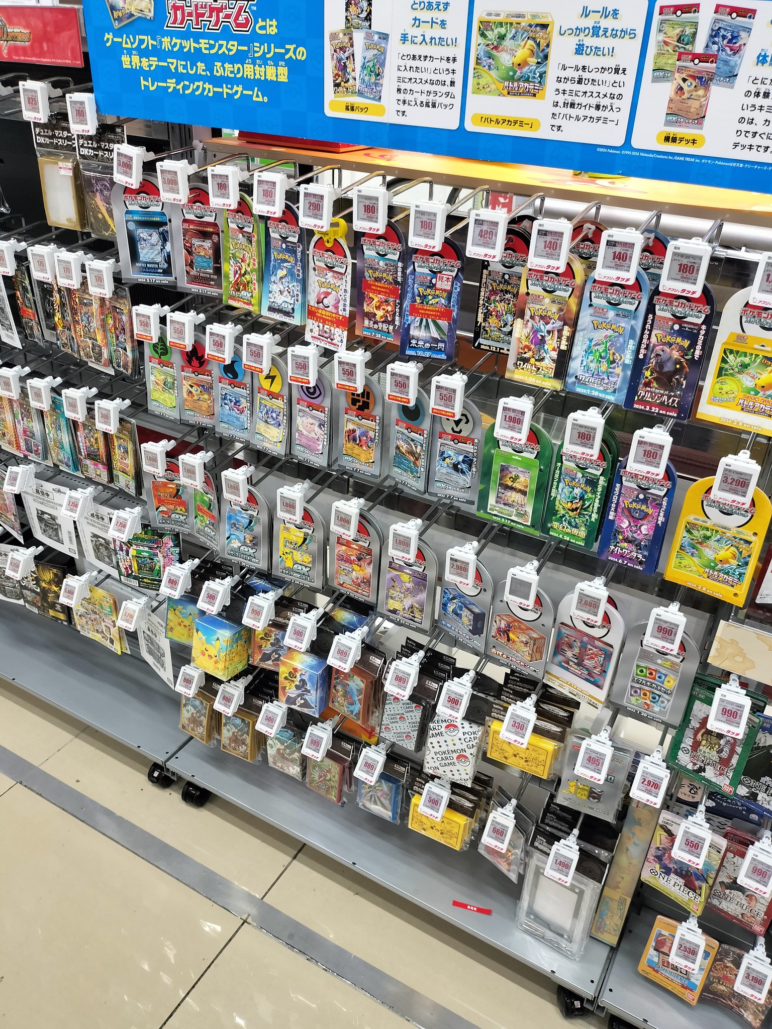 ビックカメラやコジマ店舗でも、毎週の様にポケモンカード、ワンピースカード、遊戯王カードの店頭販売が行われています。