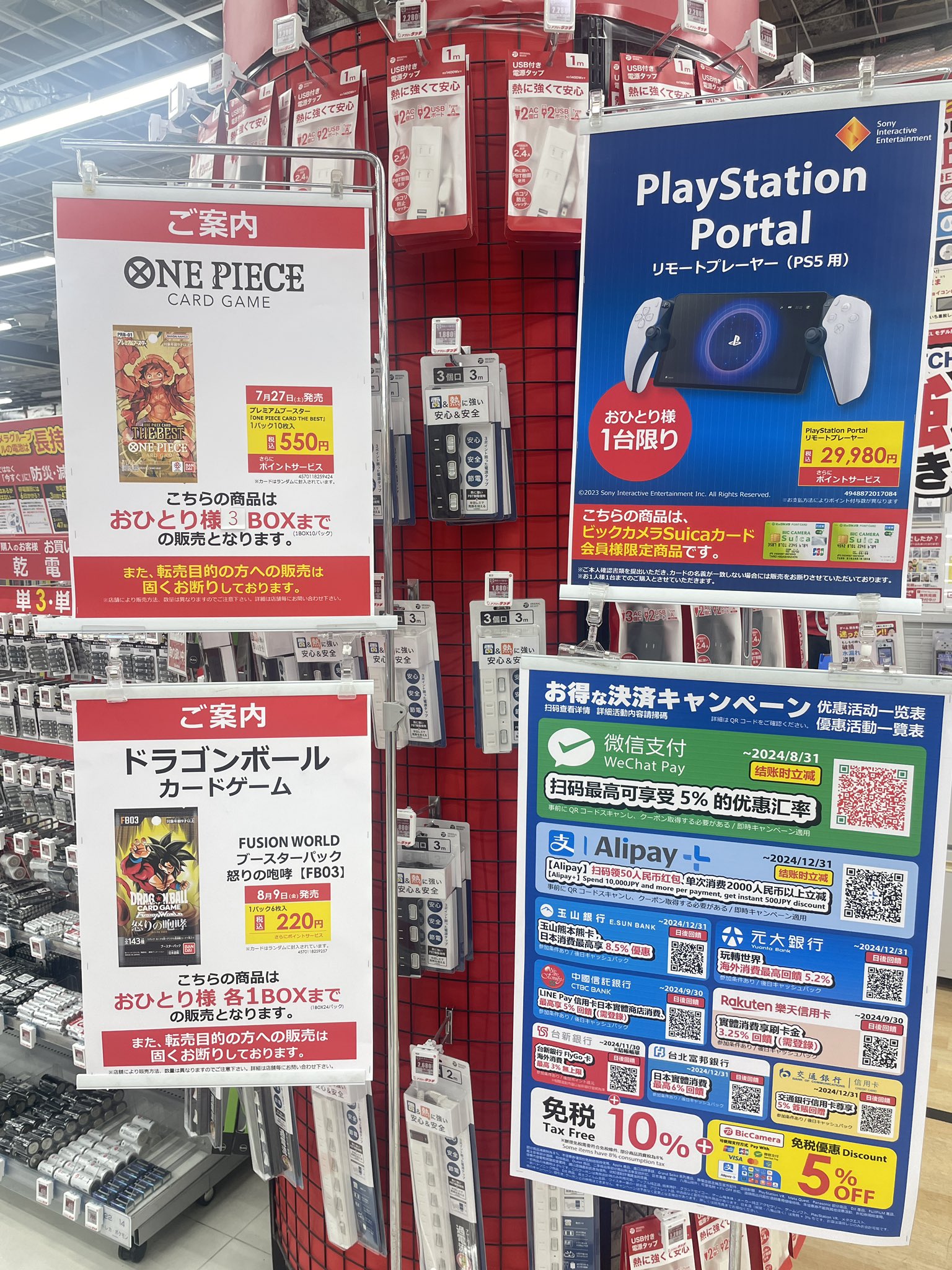 ビックカメラやコジマ店舗でも、毎週の様にポケモンカード、ワンピースカード、遊戯王カードの店頭販売が行われています。