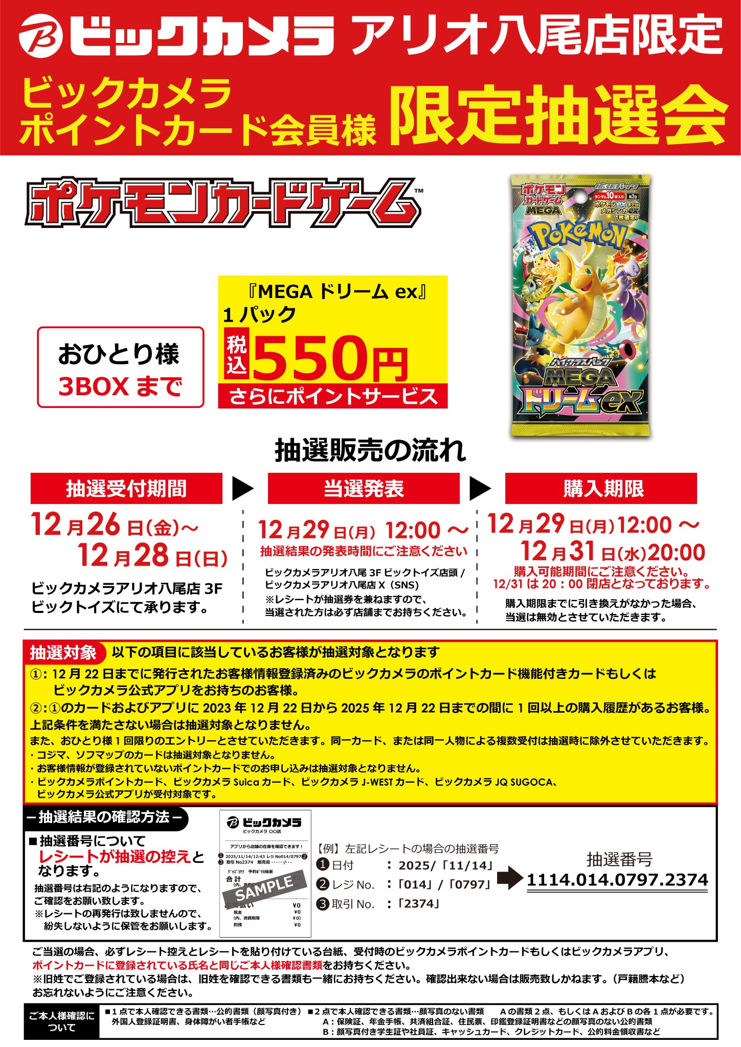 【ビックカメラ アリオ八尾 ポケカ抽選告知✨】