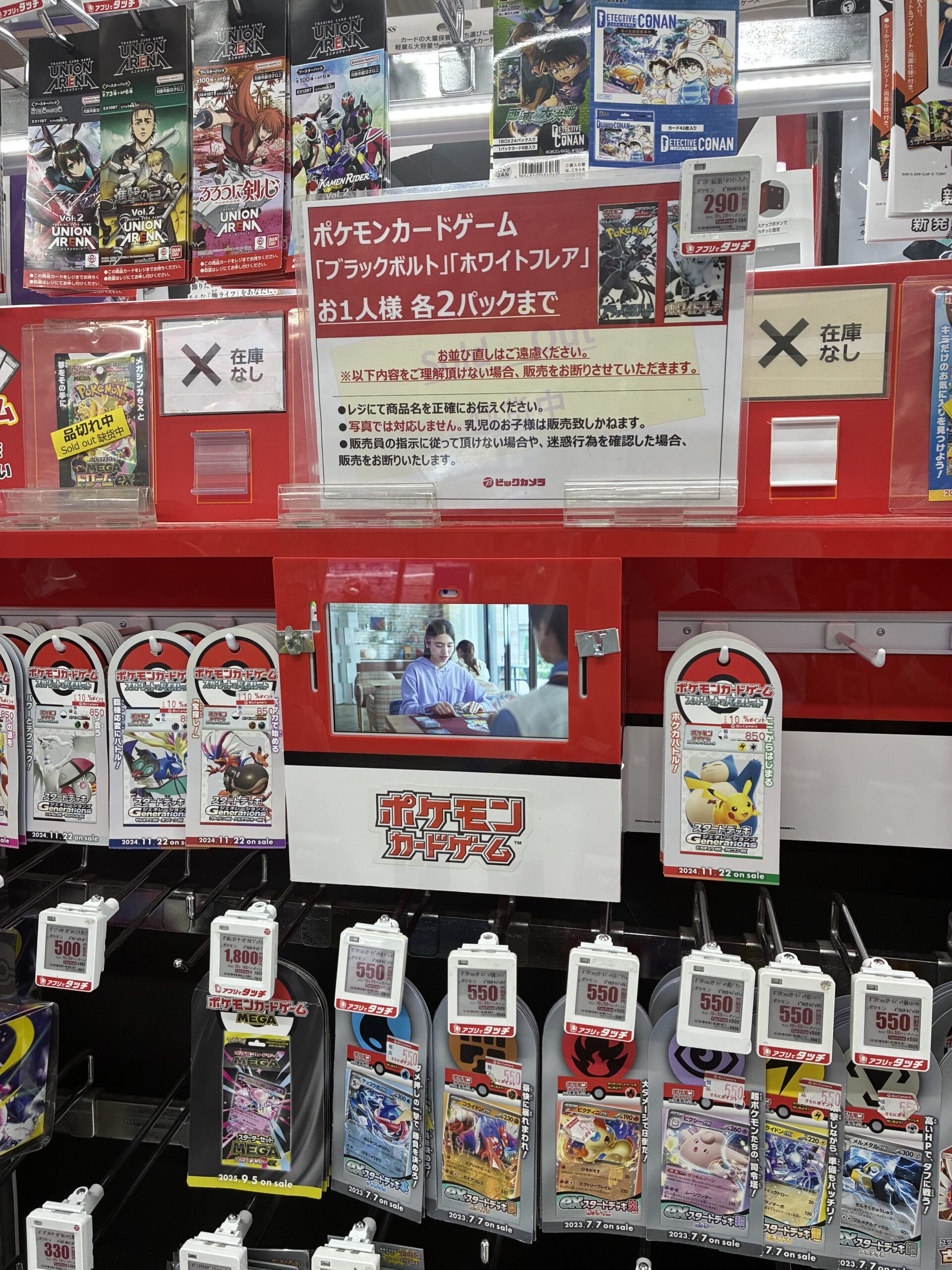 ビックカメラやコジマ店舗でも、毎週の様にポケモンカード、ワンピースカード、遊戯王カードの店頭販売が行われています。