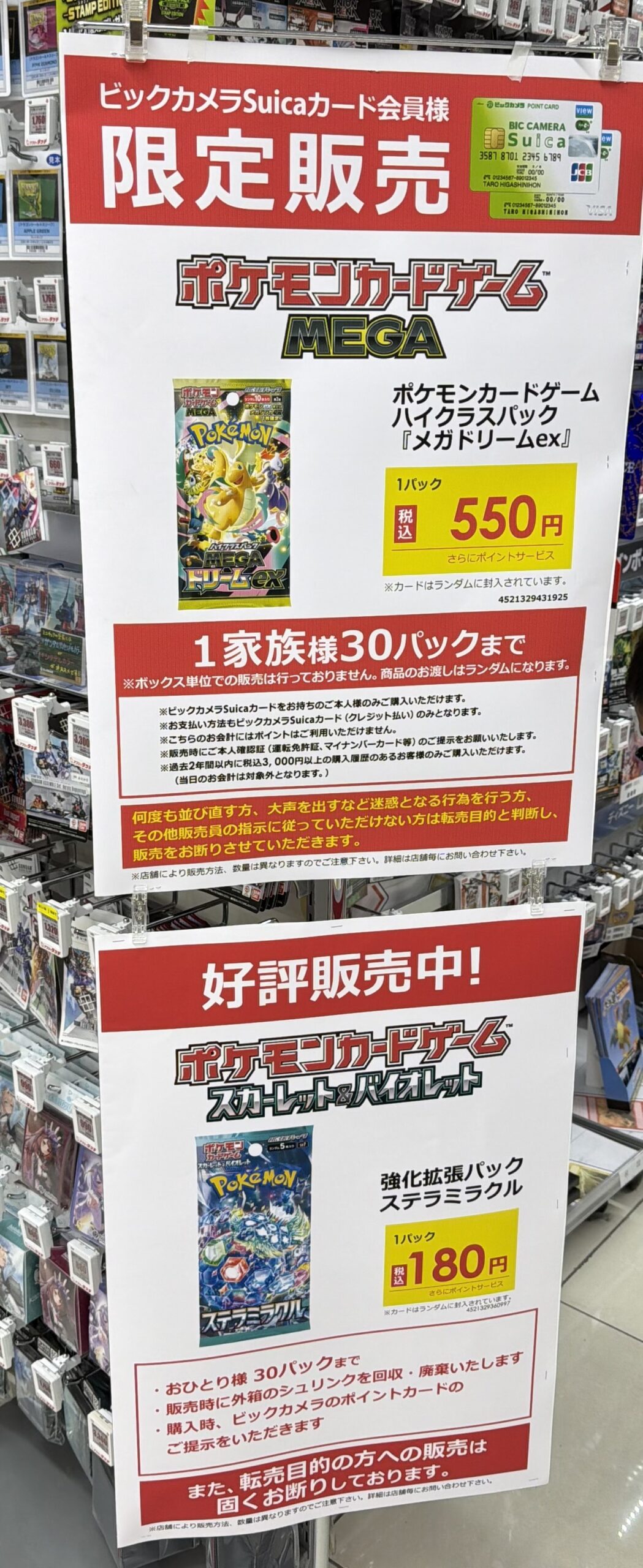 ビックカメラやコジマ店舗でも、毎週の様にポケモンカード、ワンピースカード、遊戯王カードの店頭販売が行われています。