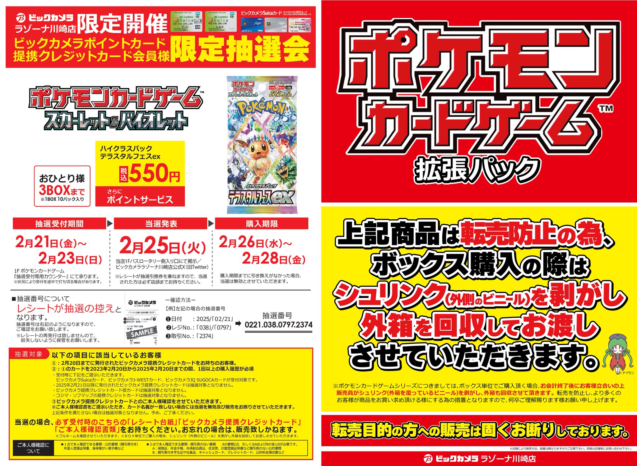 『ビックカメラ(コジマ含む)』店頭でのポケカ、ワンピースカード、遊戯王カードのゲリラ販売情報。転売屋に負けずに定価入手する為の支援を実施✨