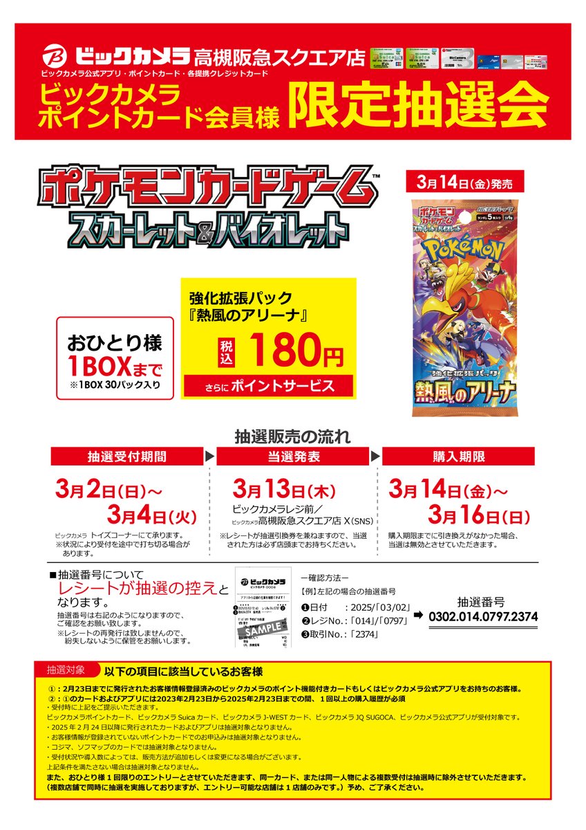 『ビックカメラ(コジマ含む)』店頭でのポケカ、ワンピースカード、遊戯王カードのゲリラ販売情報。転売屋に負けずに定価入手する為の支援を実施✨