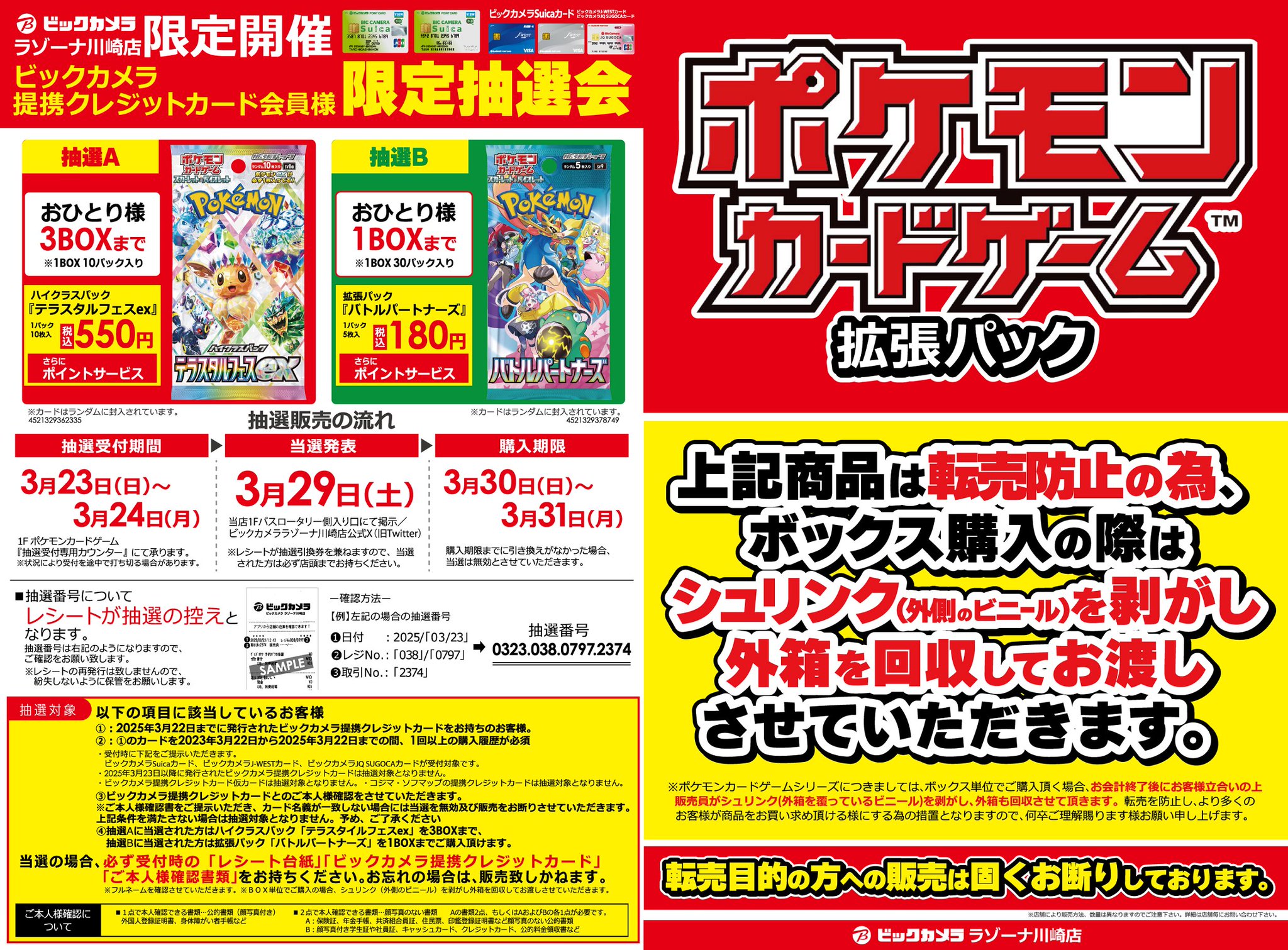 『ビックカメラ(コジマ含む)』店頭でのポケカ、ワンピースカード、遊戯王カードのゲリラ販売情報。転売屋に負けずに定価入手する為の支援を実施✨
